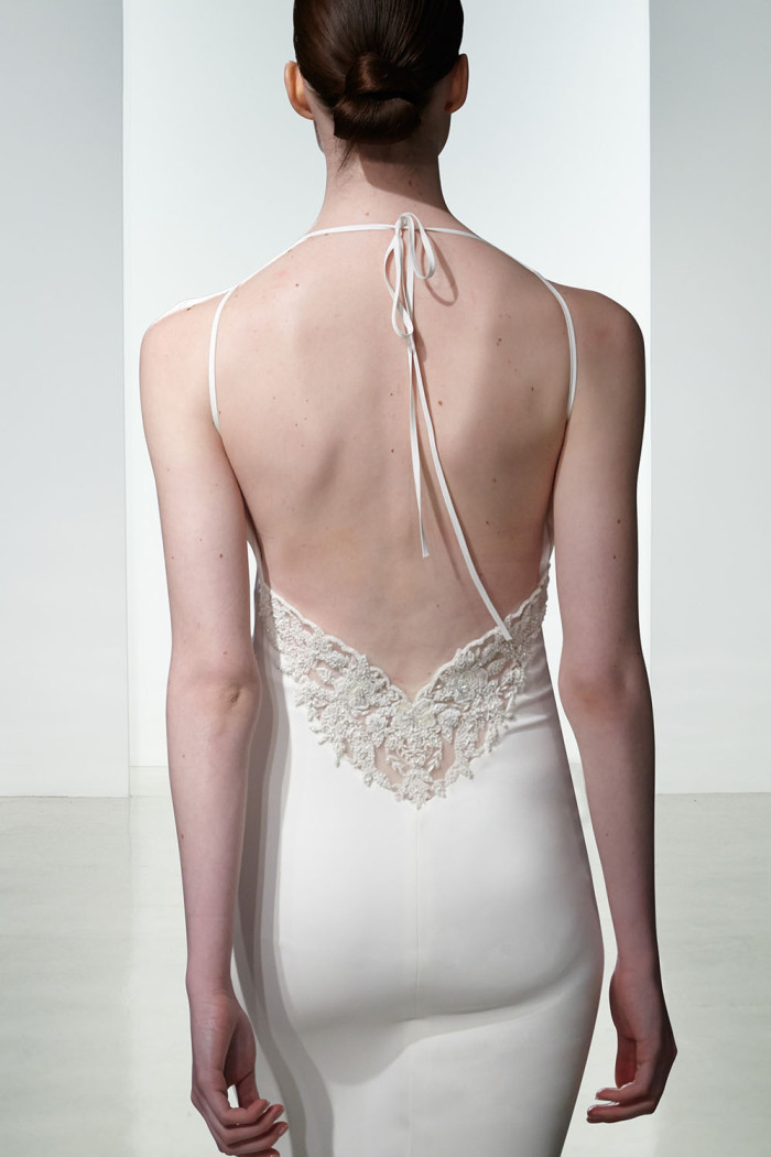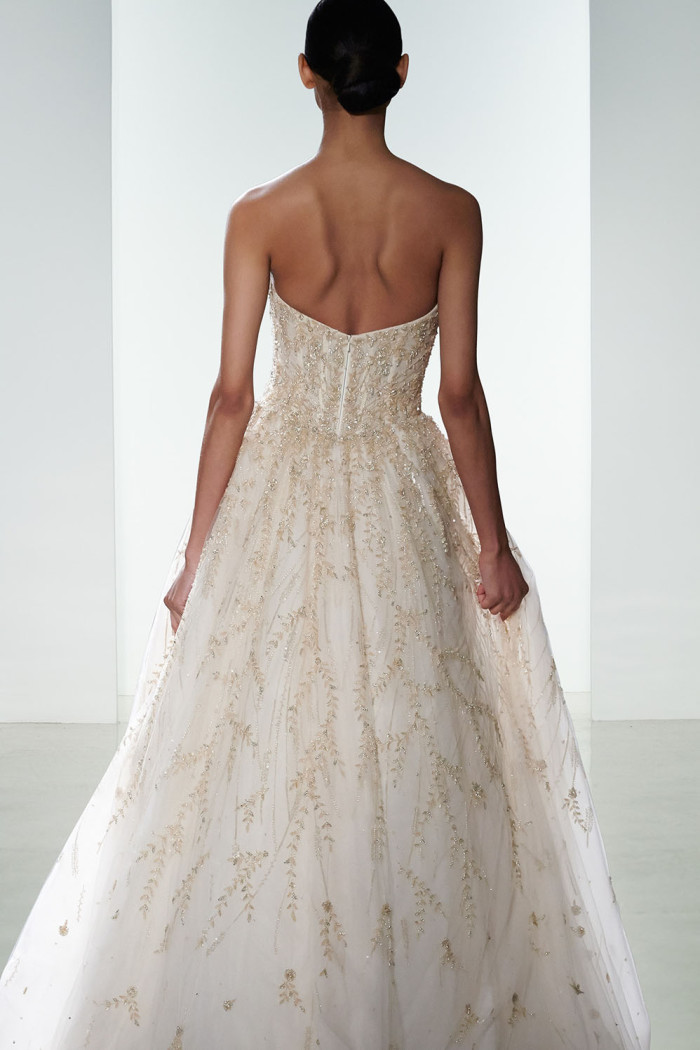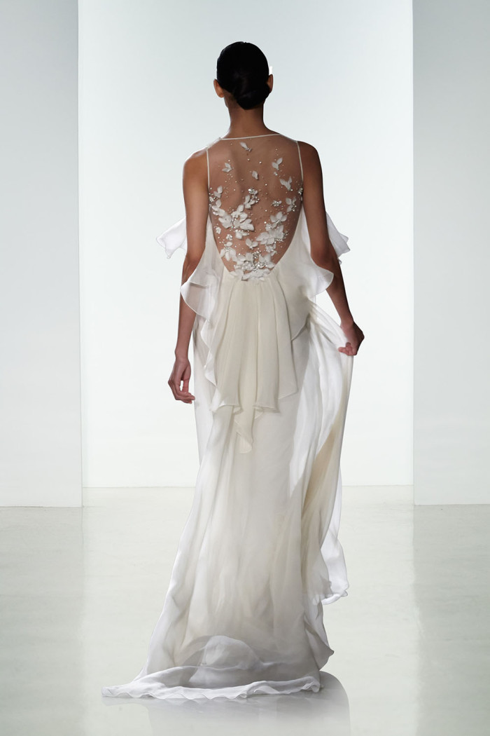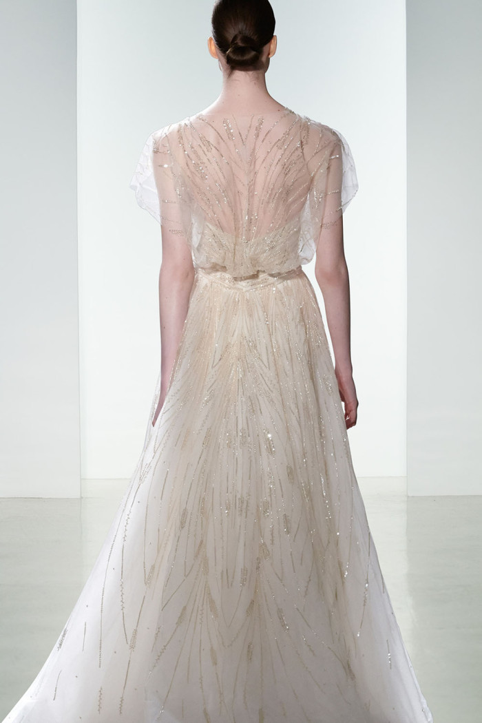 Non mancano elementi seducenti nella loro strategica tendenza bridal per il prossimo anno, come, ad esempio, l’esposizione completa o velata della sensuale linea della schiena, messa abilmente in mostra da una pletora di particolari che abbelliscono il retro delle creazioni, in modo assai significativo.