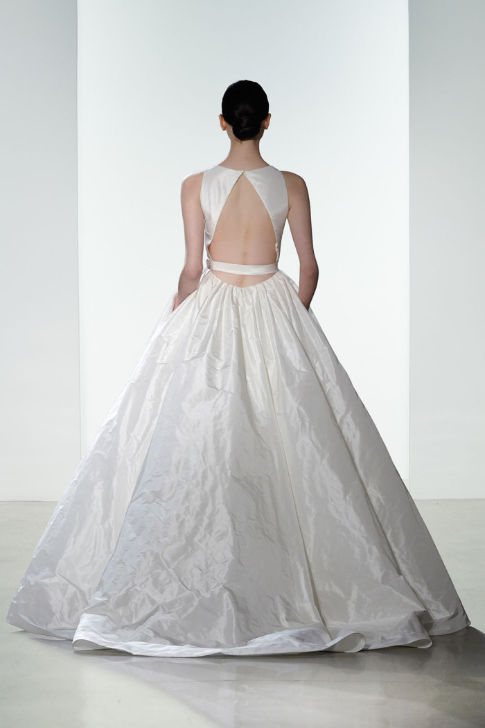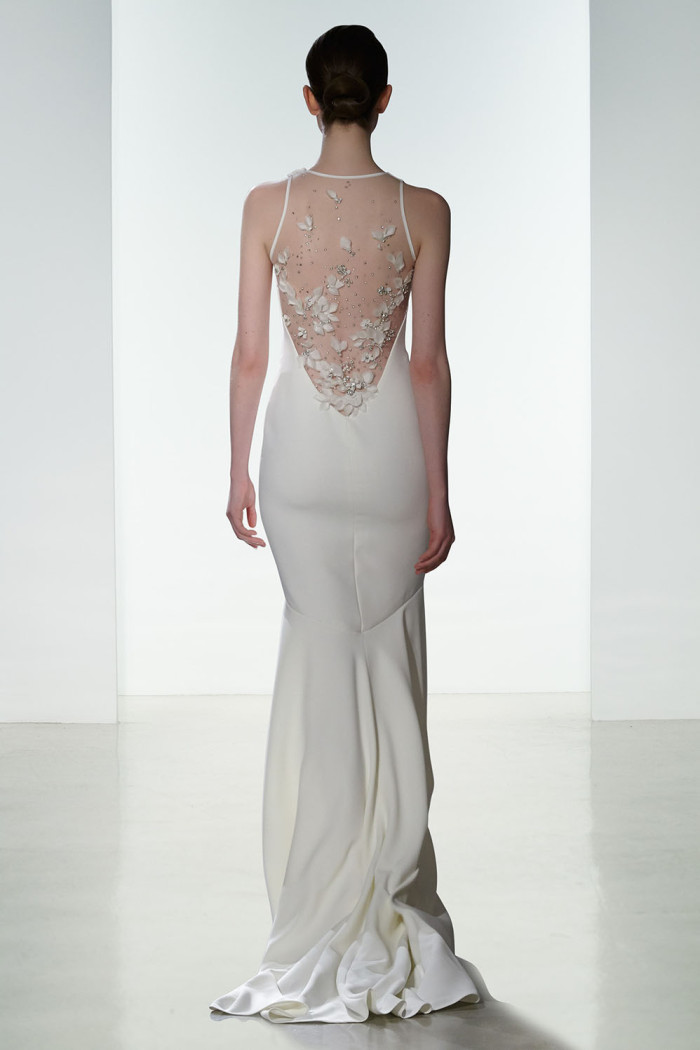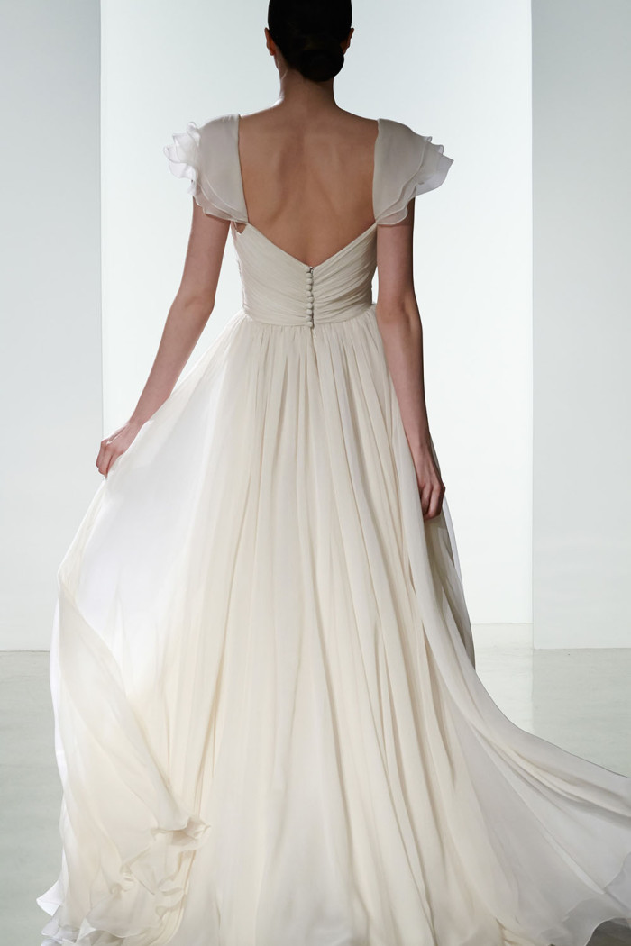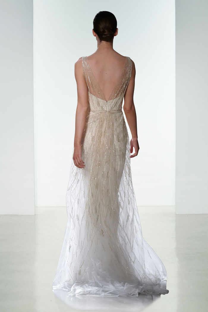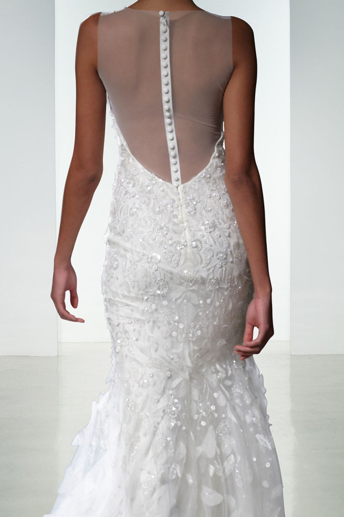 Non mancano elementi seducenti nella loro strategica tendenza bridal per il prossimo anno, come, ad esempio, l’esposizione completa o velata della sensuale linea della schiena, messa abilmente in mostra da una pletora di particolari che abbelliscono il retro delle creazioni, in modo assai significativo.