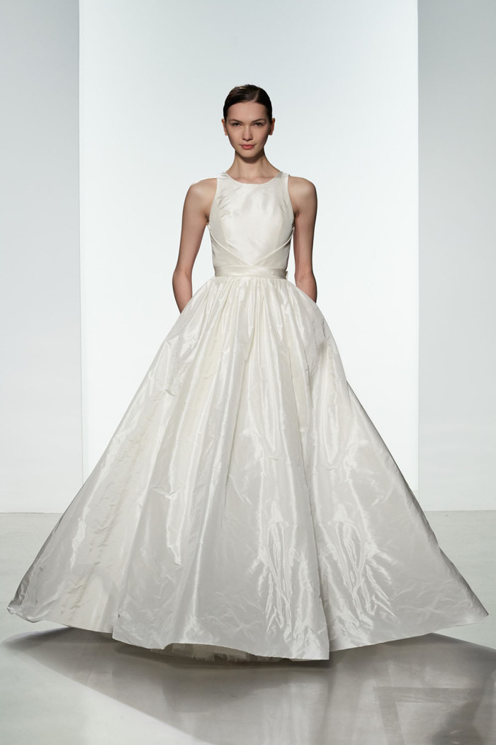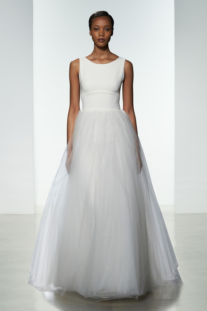 I nuovi abiti da sposa Amsale 2016 fanno dell’elegante semplicità il loro vessillo di battaglia, appropriandosi di linee e strutture ben definite, armoniosamente mescolate a geometrie di raffinata e sobria purezza.