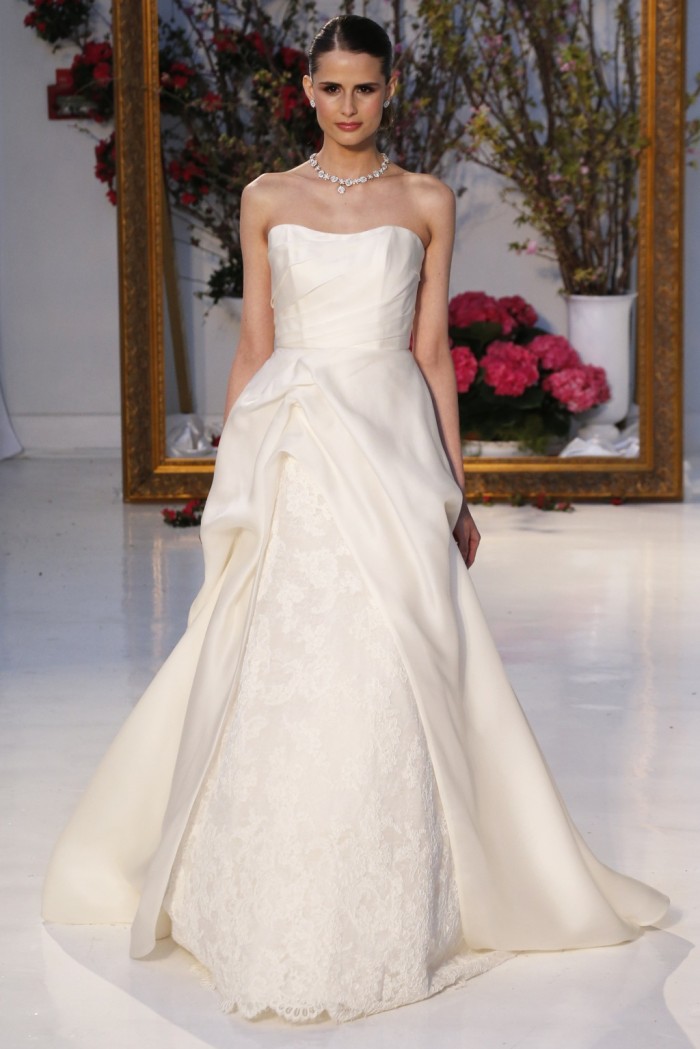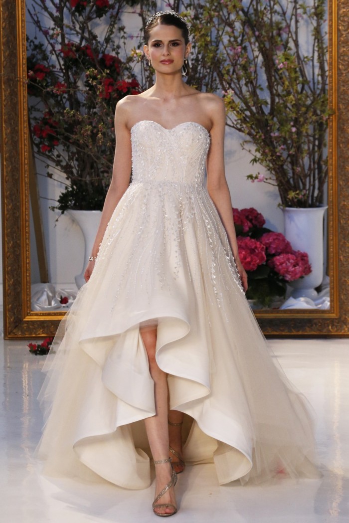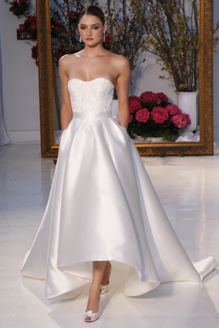 L’ispirazione del risveglio floreale, comuqnue, non tralascia l’ammirazione per tendenze glamour in fatto di abiti da sposa, come le eleganti asimmetrie delle gonne, a creare un look raffinato e brioso al contempo.