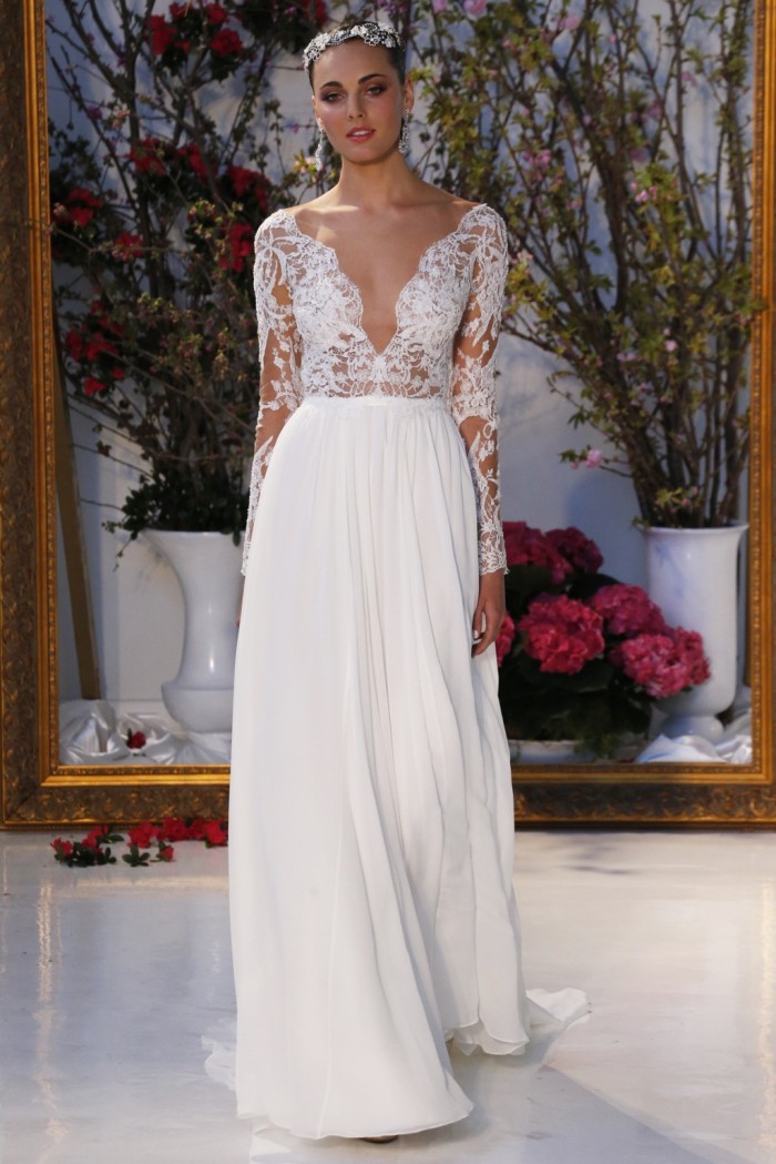 Anne Barge 2017, però, non è solo questo: lo stile di fondo è un connubio sartoriale di elementi senza tempo e di dettagli contemporanei, realizzando vestiti da sposa dal fascino estemporaneo, delicato e con un sofisticato tocco di esotico.