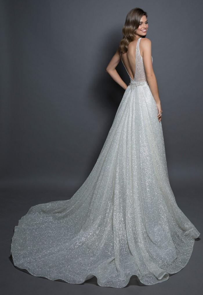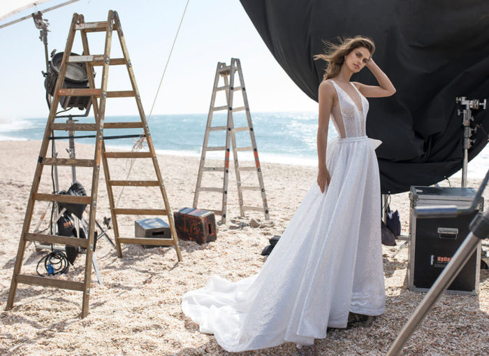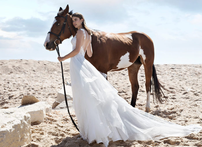 Non solo bianco, comunque: gli abiti da sposa 2018 strizzano l’occhio a pennellate di delicata parvenza in avorio e cipria, rilucendo, talvolta, di dorati bagliori.