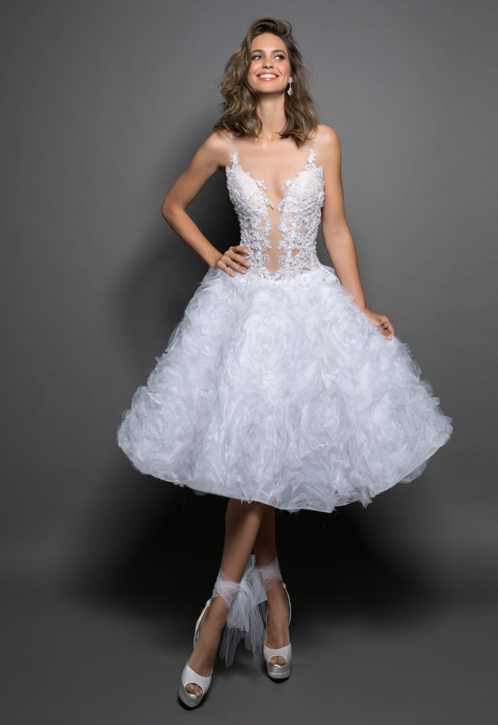 Alll’estemporaneità dell’eleganza romantica, poi, si aggiunge un pizzico di intrigante innovazione stilistica, grazie alla presenza di modelli crop top, in cui corpetti e gonne si suddividono per lasciar intravedere qualche centimetro di serica pelle: un tocco di glabalizzazione glam e chic, che, dai mercati spagnoli ed inglesi, approda con raffinato successo anche qui.