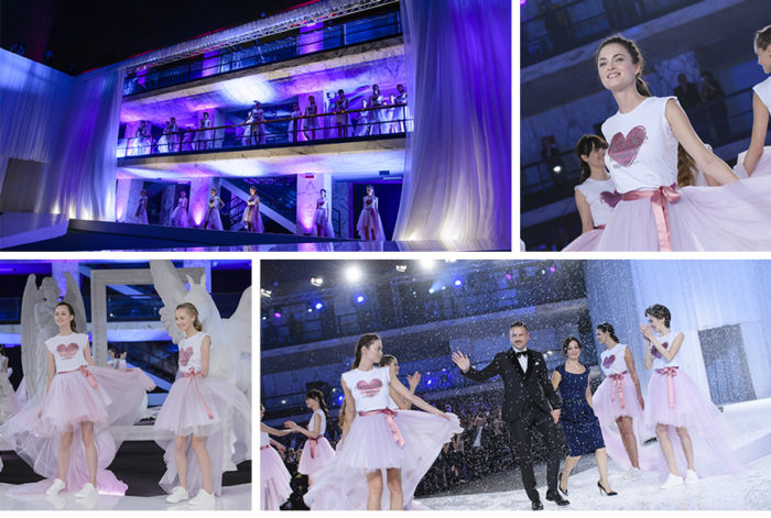 Rita Vinieris, Rivini: “Un viaggio attraverso lo specchio rosa. Femminili silhouette moderne in un mix di tessuti a contrasto di lusso e toni armoniosi sfiorano il corpo, permettendo ad ogni donna di esprimere se stessa”.