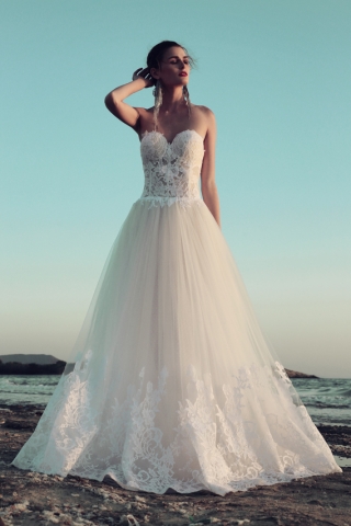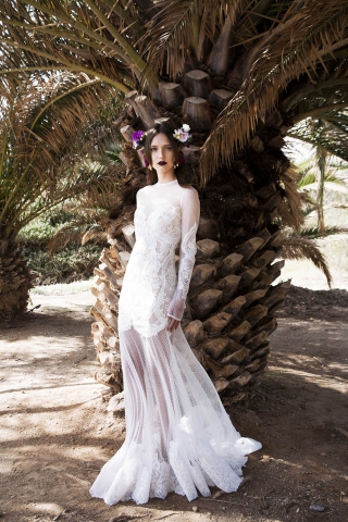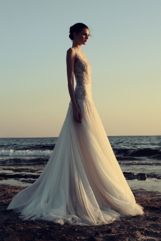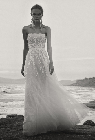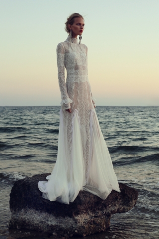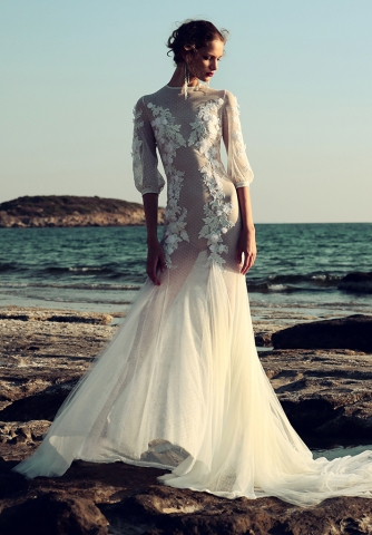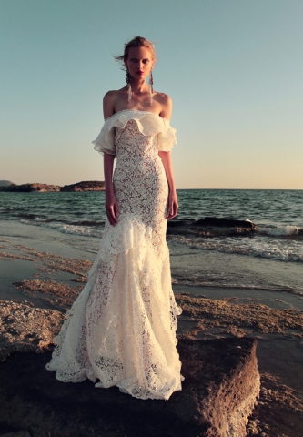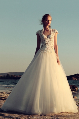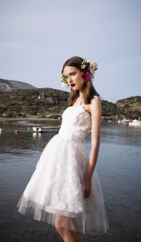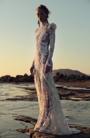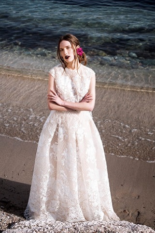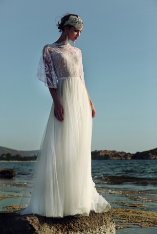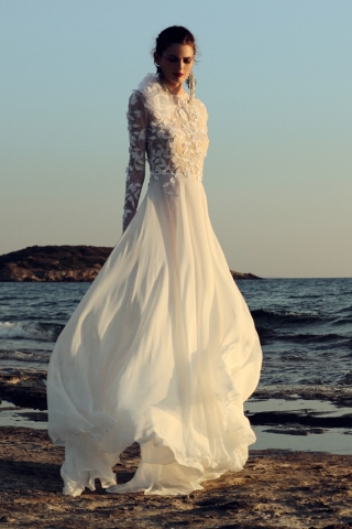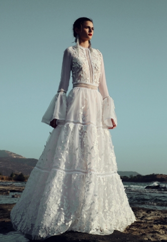 Un confronto stilistico di merito tra tradizione-modernità e romanticismo-sensualità per i nuovi abiti da sposa della maison, che ripercorre il design unico e fresco dello stilista, riuscendo a coniugare la filosofia greca con la perfezione delle tecniche artigianali e l’esclusiva sartorialità dell’alta moda, il tutto in un tripudio di texture sovrapposte, trasparenze giocose, maniche e scolli ad illusione ed applicazioni floreali, soprattutto tridimensionali.