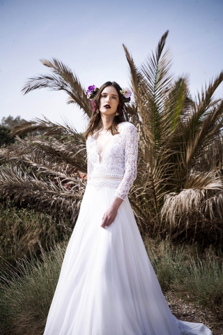 Allo stesso modo, vi è un rigoglioso intento bucolico, premiante una sposa dolce e romantica dal mood bohemien: una peculiarità che si ammira anche nella scelta delle scollature, le quali ispirano sì un un design seducente, ma mitigato da una volonta di tenerezza per il giorno più bello.