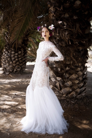 Infine, si contemplano i movimenti languidi e voluttuosi di ogni singolo vestito da sposa, in cui si evince una struttura concettuale, magistralmente impiegata da realizzare una fluidità eterea come poche altre creazioni nuziali possono permettersi.