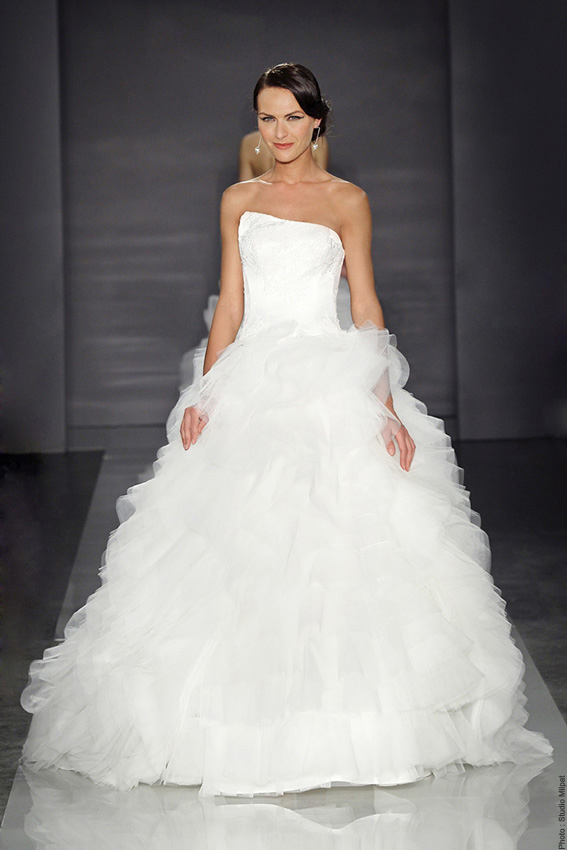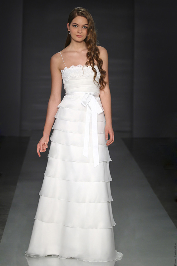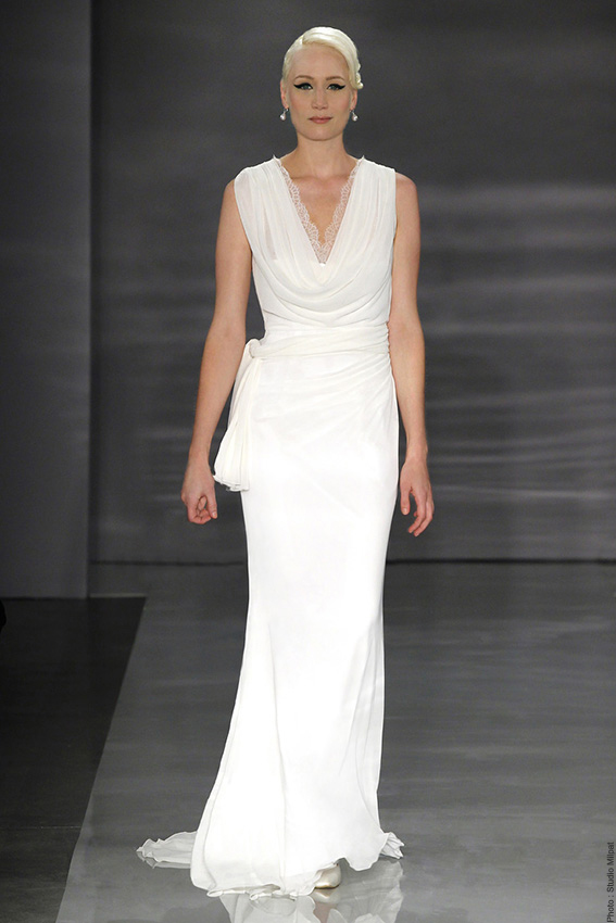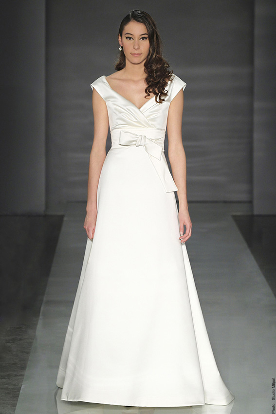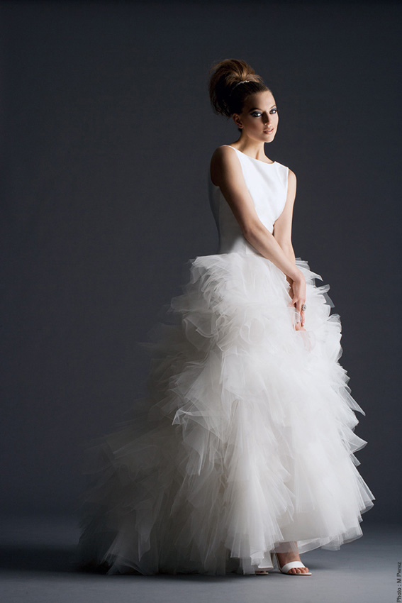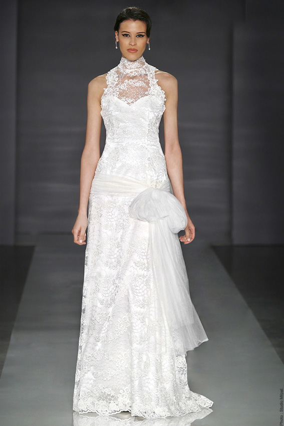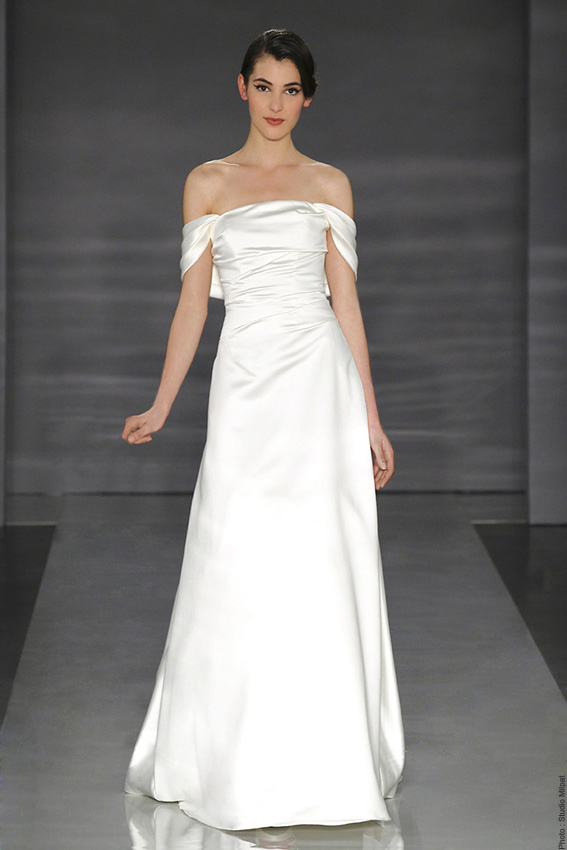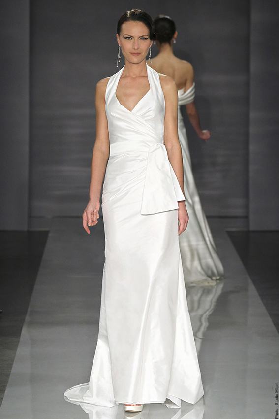 Smaniose applicazioni floreali (o quantunque di fiocchi) vengono tralasciate in favore di un look più sobrio, in cui dettagli od accessori troppo vistosi lasciano il passo all’eleganza “naturale” del vestiario nuziale.