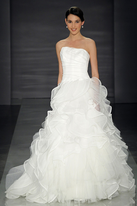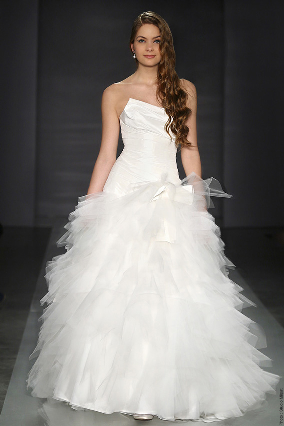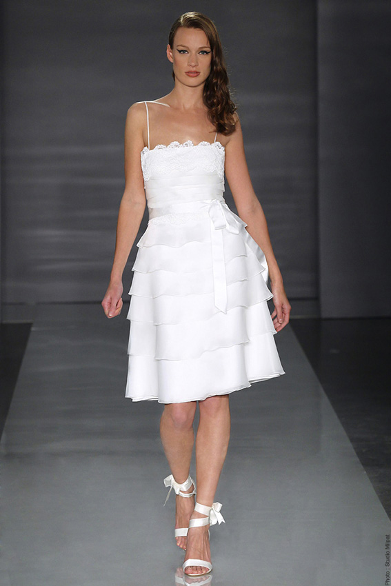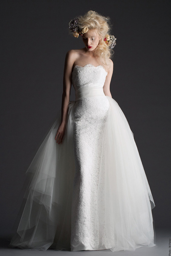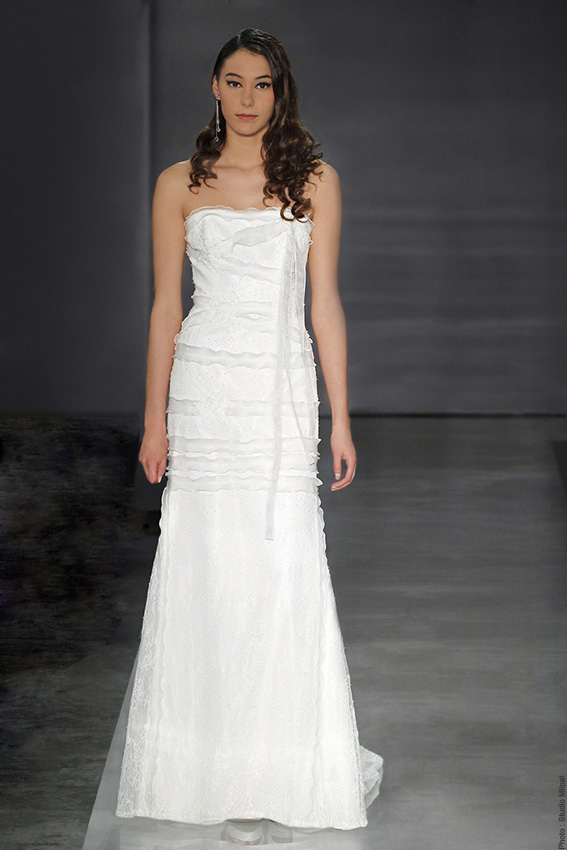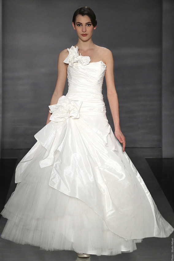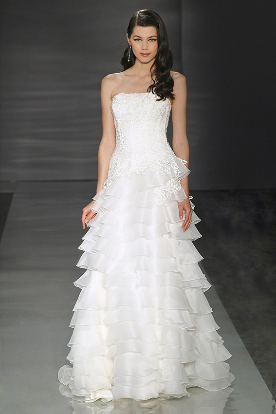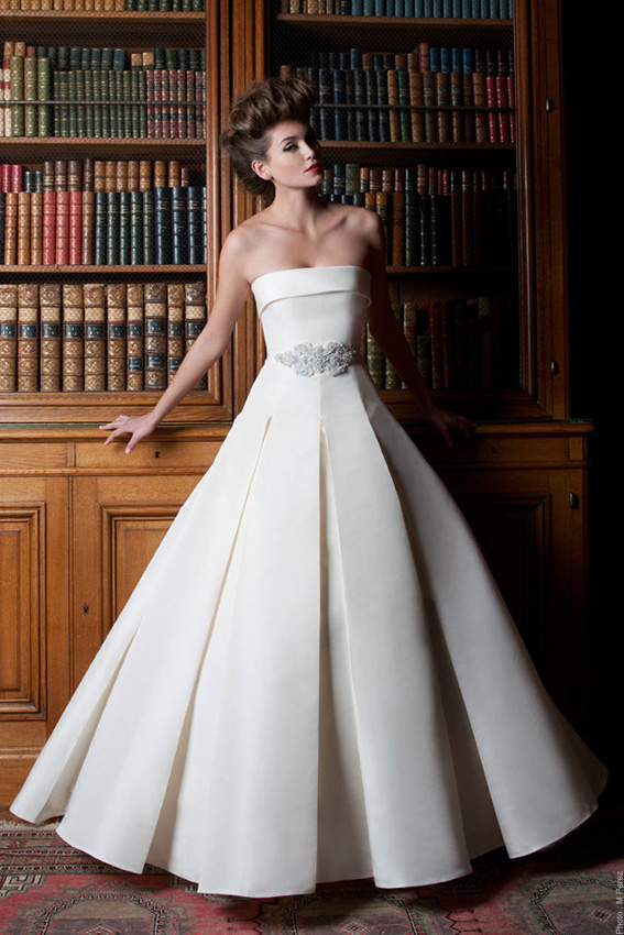 Smaniose applicazioni floreali (o quantunque di fiocchi) vengono tralasciate in favore di un look più sobrio, in cui dettagli od accessori troppo vistosi lasciano il passo all’eleganza “naturale” del vestiario nuziale.