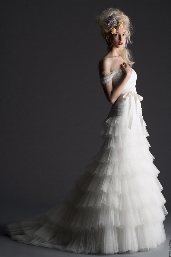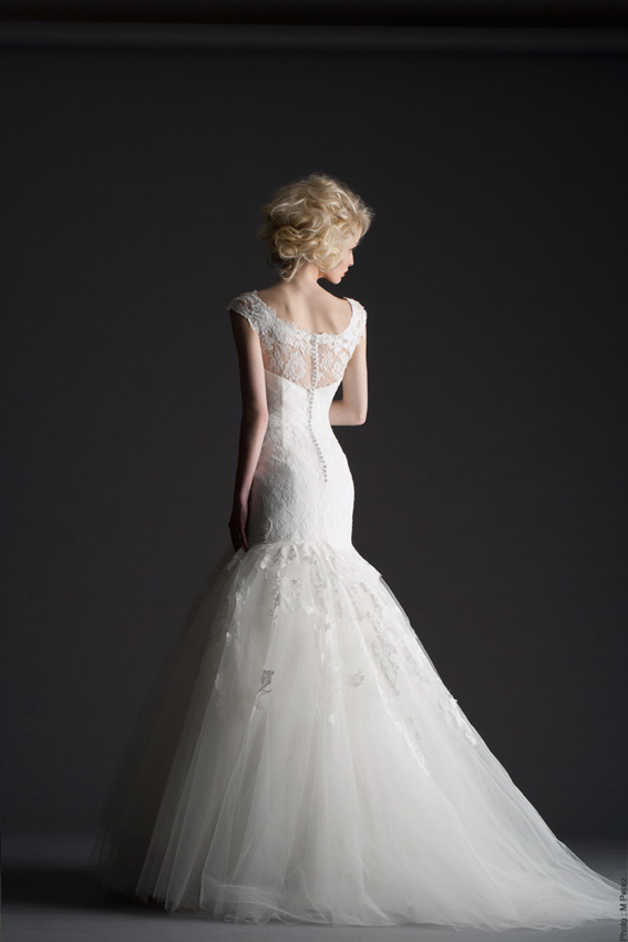 Sono abiti da sposa sofisticati, romantici, che cercano (riuscendoci) di riproporre un “love affair” alla vecchia Hollywood, di quei grandi amori che tanto hanno fatto sospirare di fronte al grande schermo…