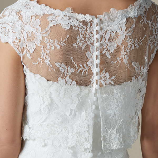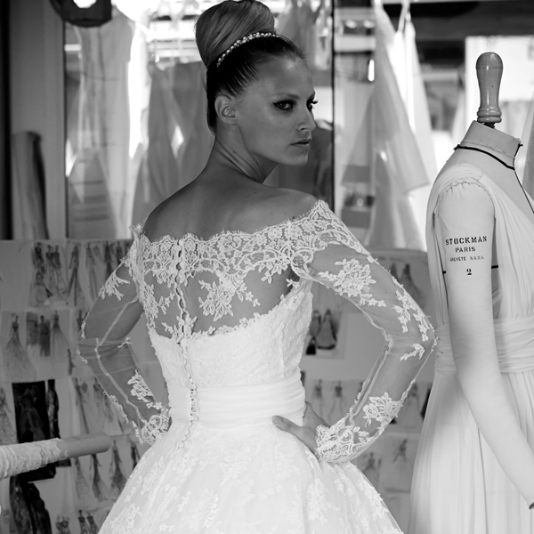 Ancora, l’intera collezione si appropria di una sofisticata raffinatezza, composta di mirate strategie dalle velate trasparenze, anche per quanto concerne gli accessori (come boleri e coprispalle), in un delizioso susseguirsi di vedo e non vedo di prezioso pizzo Chantilly, Calais od impalpabile tulle.