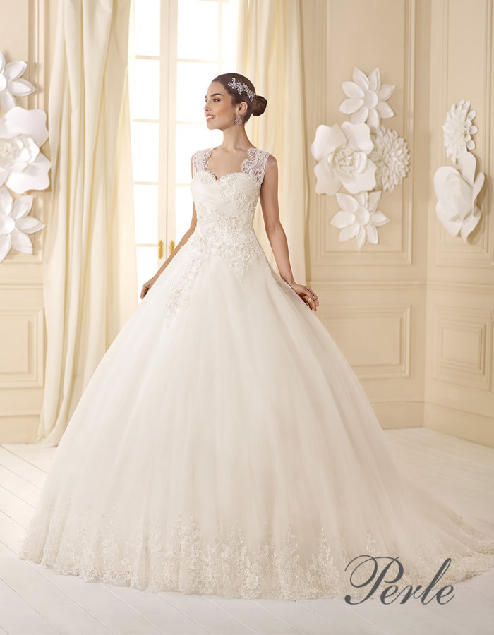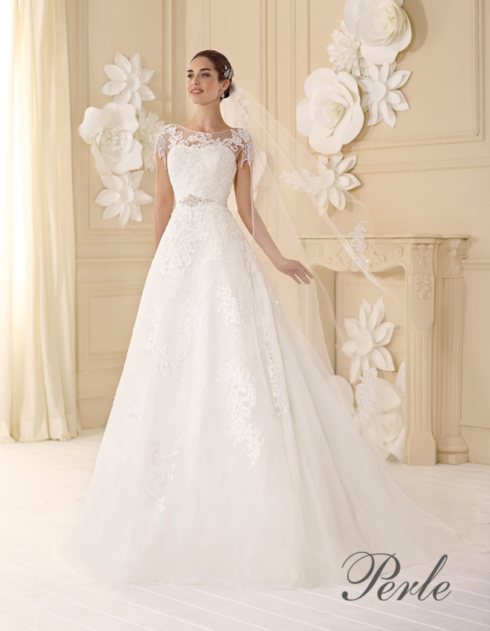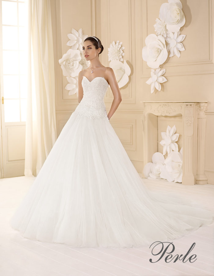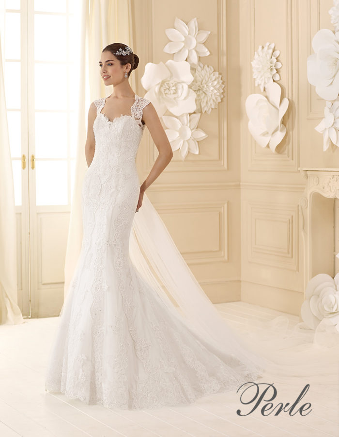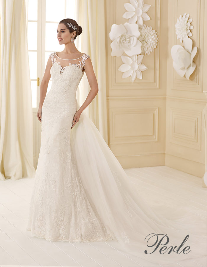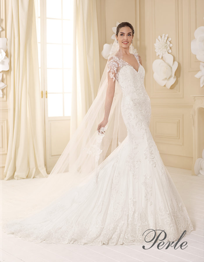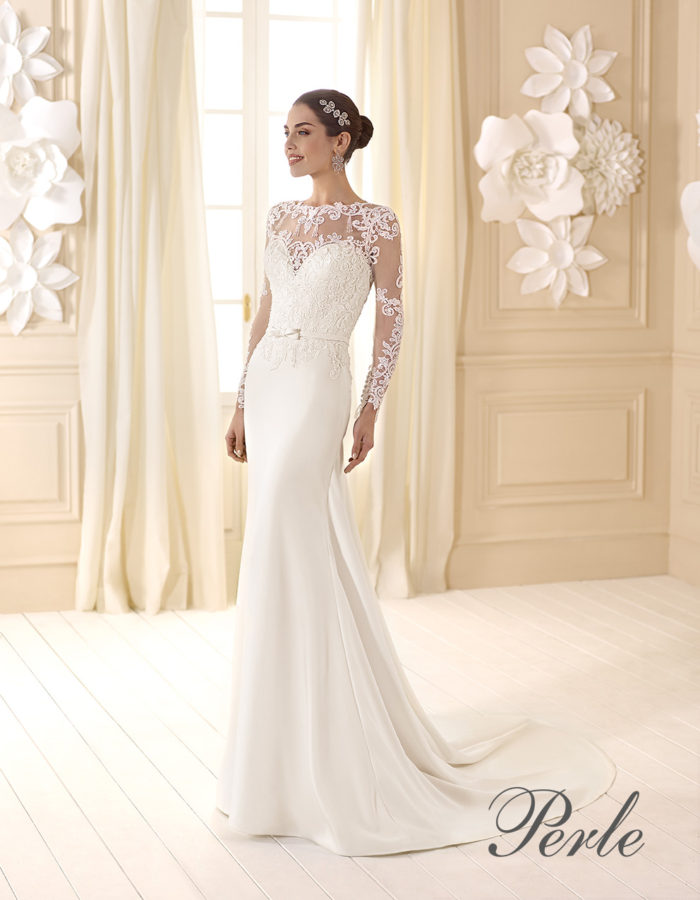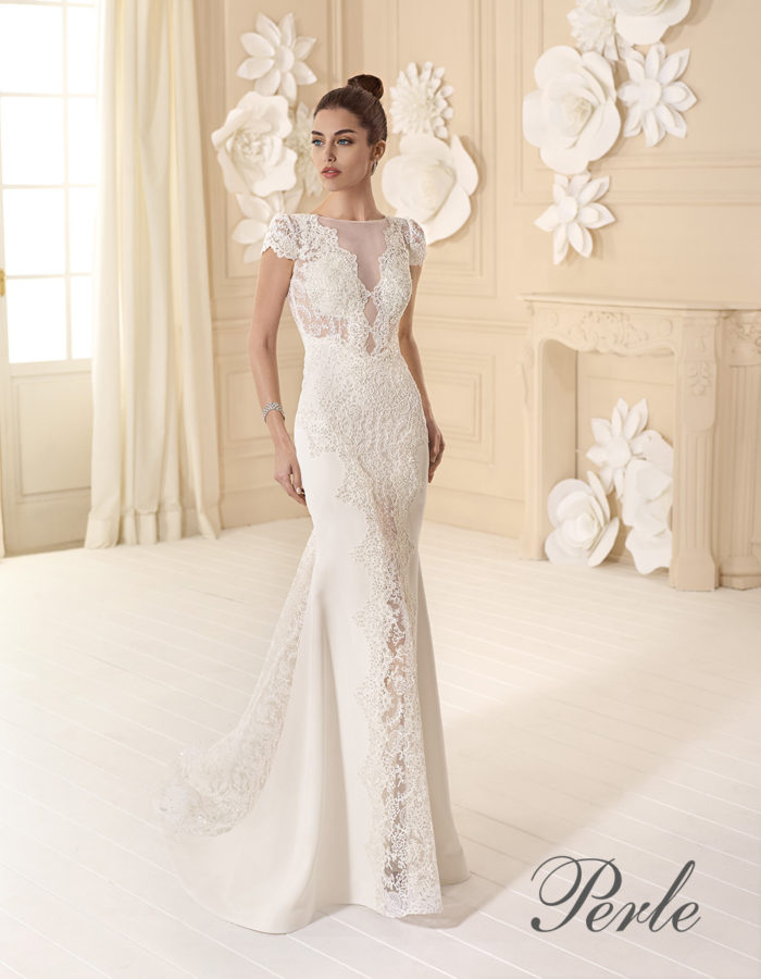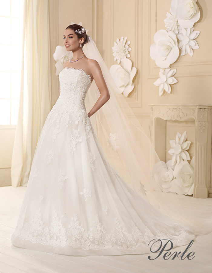 Per gli abiti da sposa Perle 2017 solo la pregiatezza di tessuti preziosi, gemme al tatto ed alla vista, che, dal pizzo al mikado, creano lavorazioni carismatiche, soprattutto per quanto riguarda i principeschi ricami, inconfondibile risultato di pizzi rebrodadi, ricamati a filo e macramè.