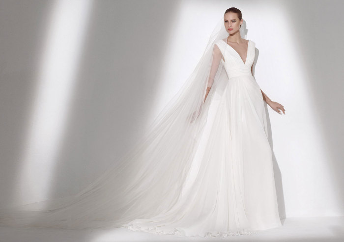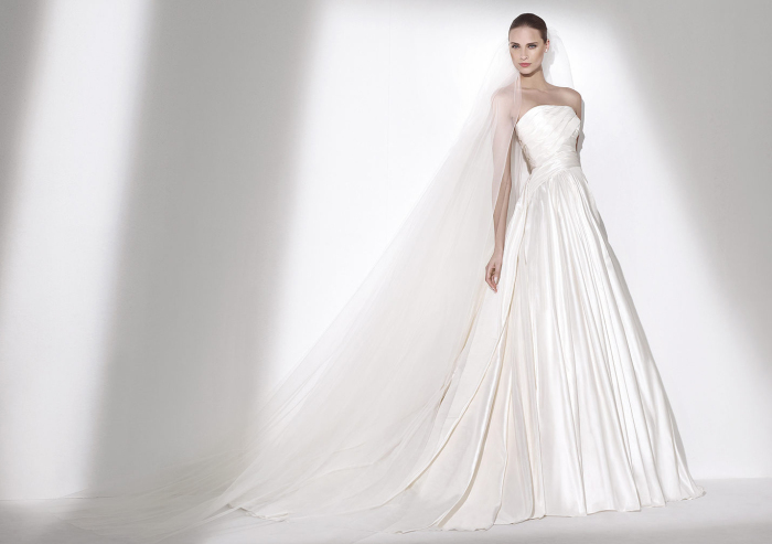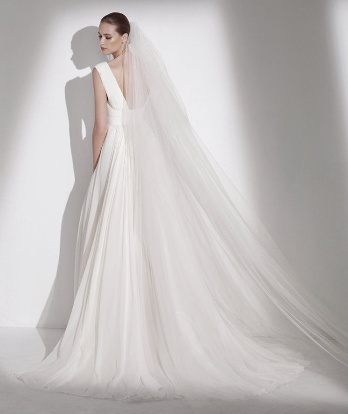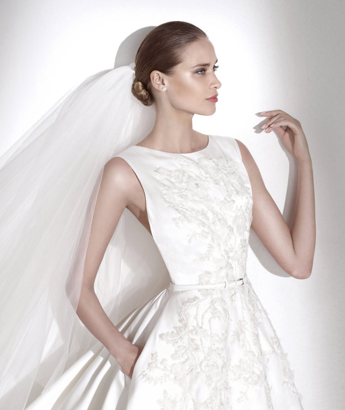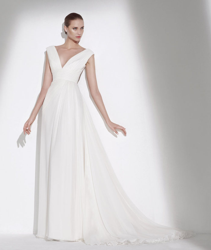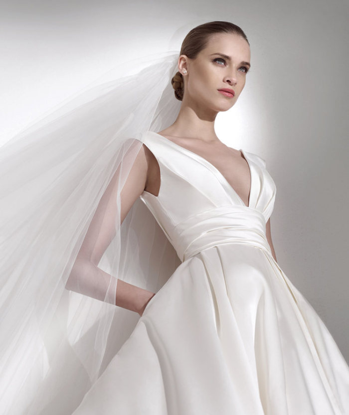 Gli abiti da sposa 2015, in effetti, riferiscono il concetto di una sposa-principessa moderna, la quale non rinuncia affatto ad entusiaste leggiadrie ed importanti volumi, mentre inneggia ad un mood più lineare e meno vistoso, con gonne deliziosamente drappeggiate o dalla tenera consistenza eterea.