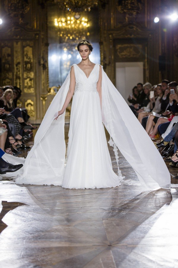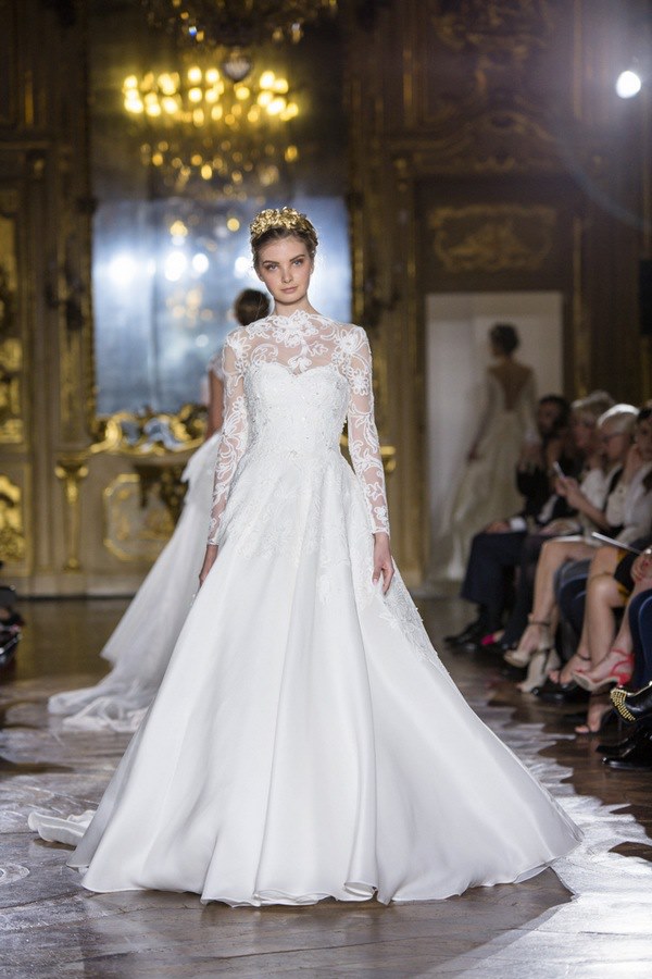 Quest’ultimi evidenziano pregiati ricami che arricchiscono sia l’intera silhouette sia i gloriosi dettagli, a partire dalle maniche diafane e regali: ovviamente, il tutto è il risultato di un’eccellente lavorazione a mano, perfetta per creare, al contempo, affascinanti effetti tattoo e see through.