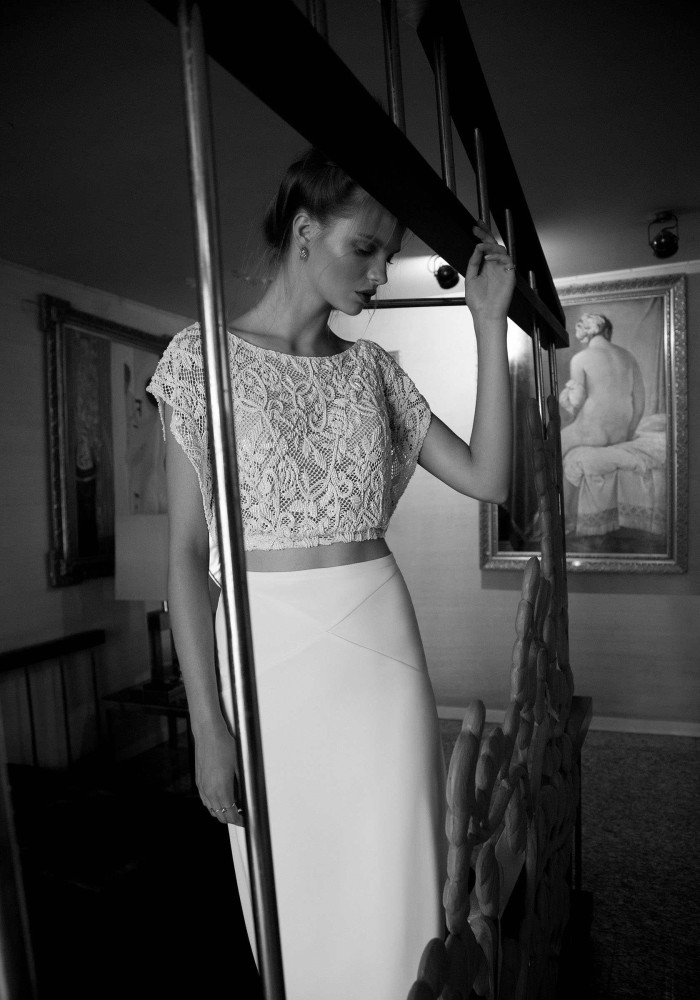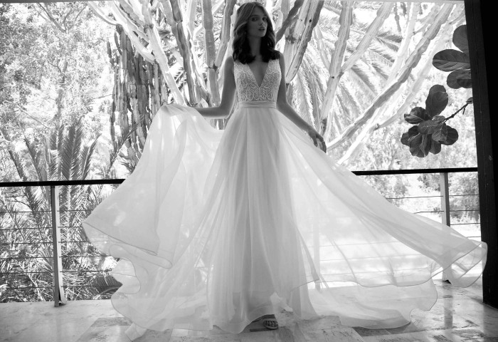 Le gonne sono un esempio di eterea fluidità, mentre gli stessi corpetti utilizzano ed evidenziano quei trend bridal appena riportati, ma non solo…