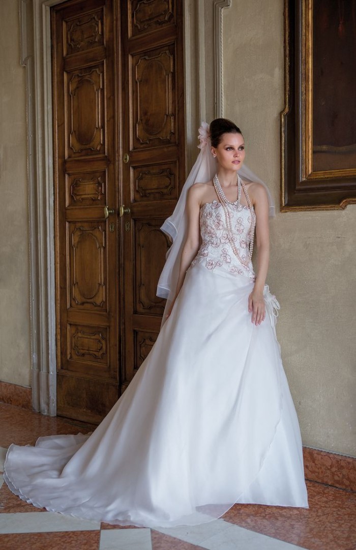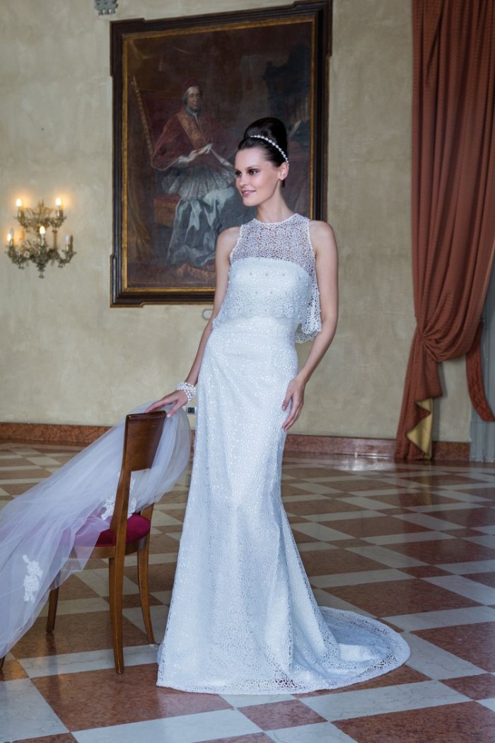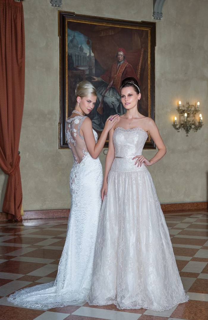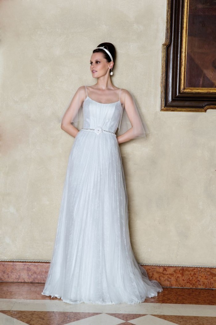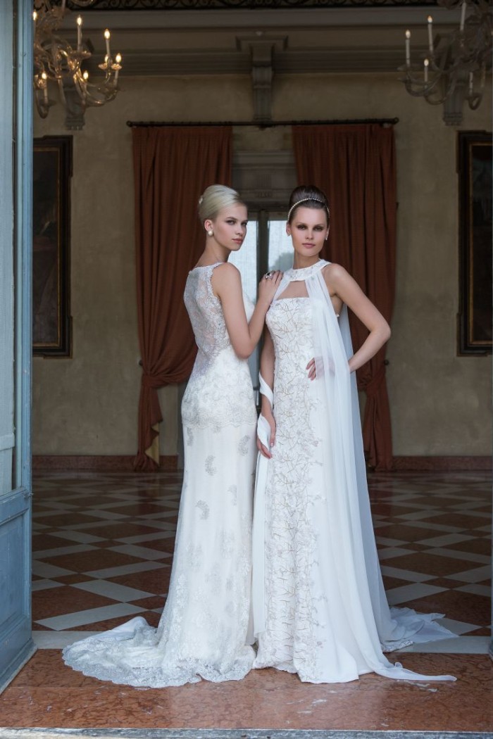Infine, la squisita fattura di ogni singolo abito da sposa si ammanta della qualità inequivocabile della confezione, così come dell’impiego di pregiati tessuti, quali pizzi preziosi e sete purissime, declinati in eburnee variazioni e dettagli ton sur (sebbene non manchi un delicato contrasto niveo con il rosa quarzo, colore Pantone 2016).