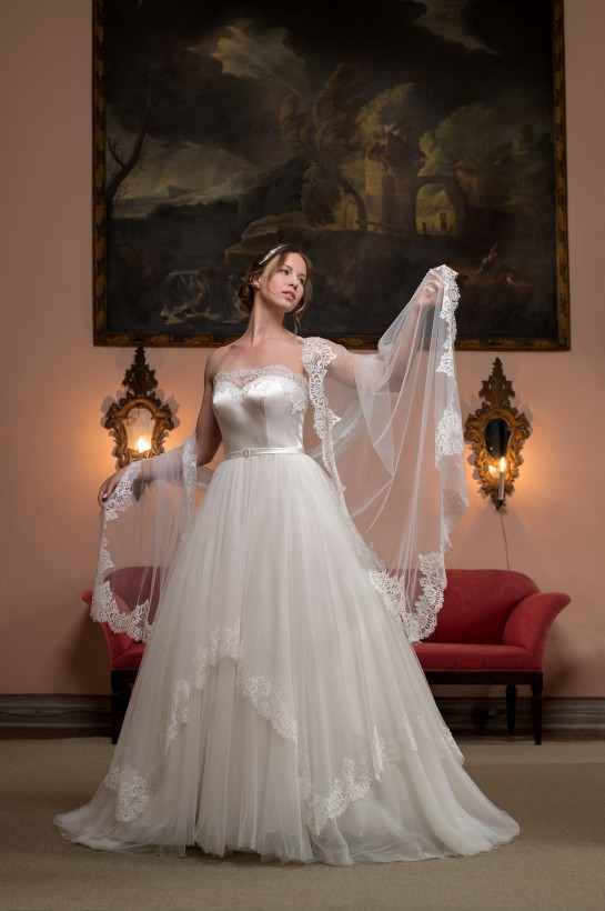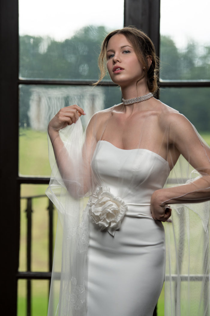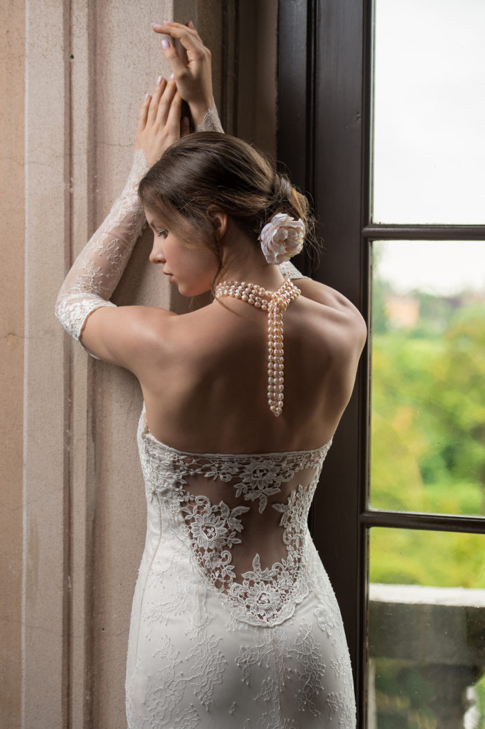 Il risultato finale contempla una leggiadria sofisticata della protagonista del suo giorno più bello, condividendo l’algida evocazione di un sogno diafano dalle tonalità eburnee.