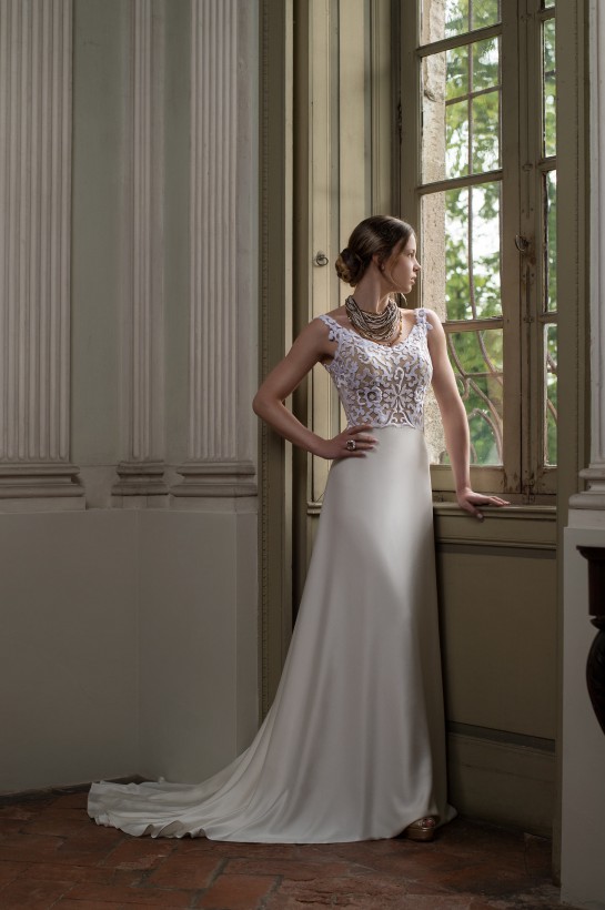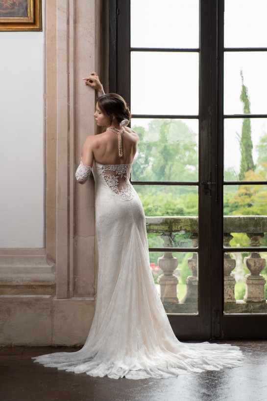 La sposa I Love Me 2017 gioca con geometrie dilettevoli, perfette carezze di tessuti preziosi che scivolano lungo la figura come una seconda pelle.
