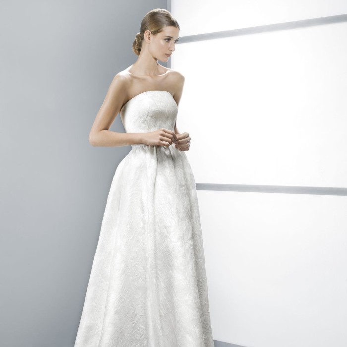 I modelli presentano vari tagli, proprio per andare incontro alle esigenze di tutte le prossime sposine: non possono mancare le classiche silhouette a gonna ampia e bustino dallo scollo sempre diverso (il tutto sottolineato da tessuti leggeri come tulle ed organza), mentre se ne trovano altri, a sigaretta, con linee dritte e fluide (che scivolano alla perfezione grazie all’impiego di sensuali satin duchesse e che, in molti casi, strizzano l’occhio al mikado taffetà).