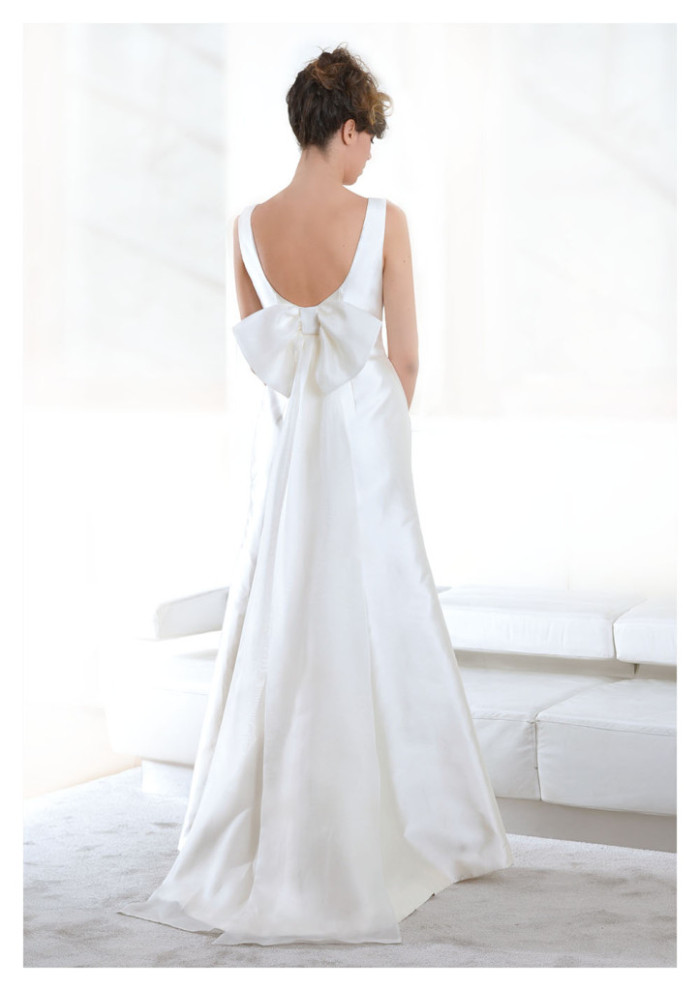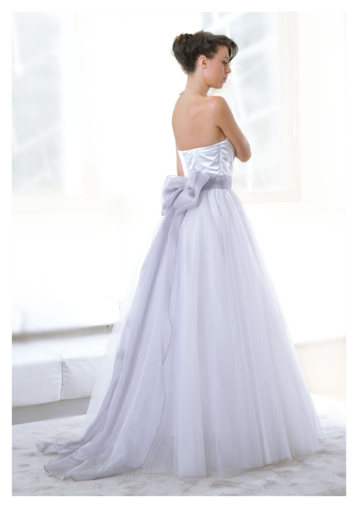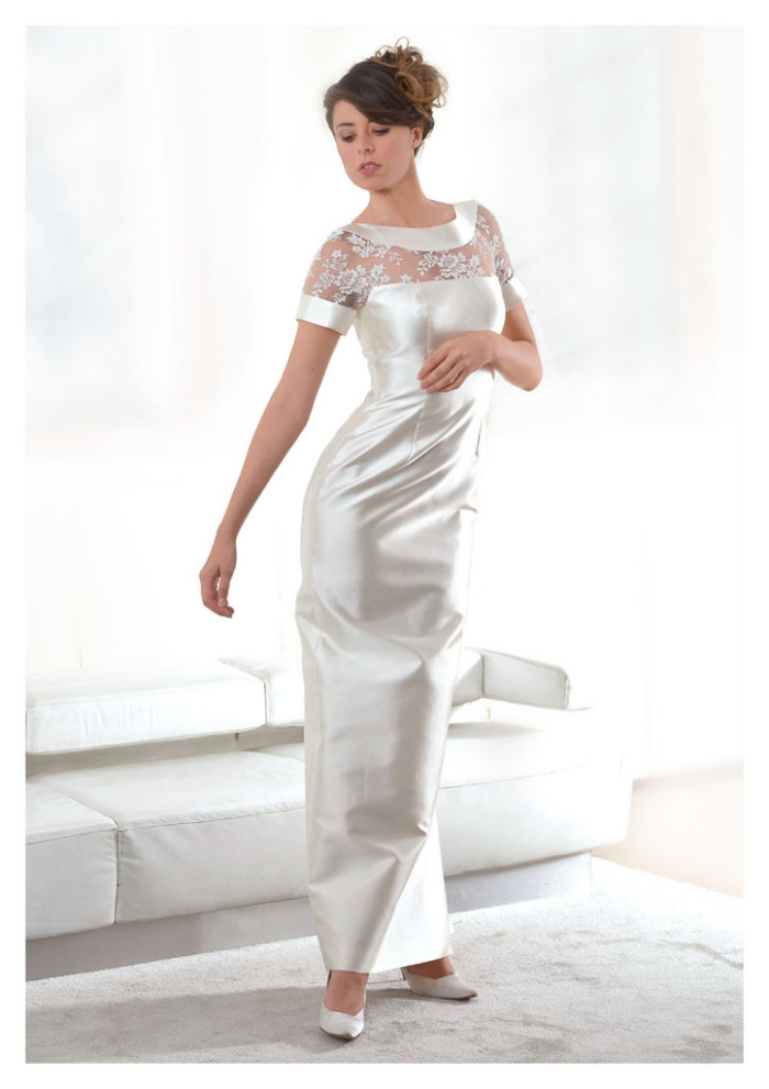 La lavorazione sartoriale è ineccepibile, come lo stesso si può dire dei tessuti impiegati: dalla serica bellezza del mikado di seta alla seducente presenza del pizzo valencienne, mentre volute di organza mariage e strati impalpabili di tulle sottolineano un elegante mood estemporaneo, altamente femminile.