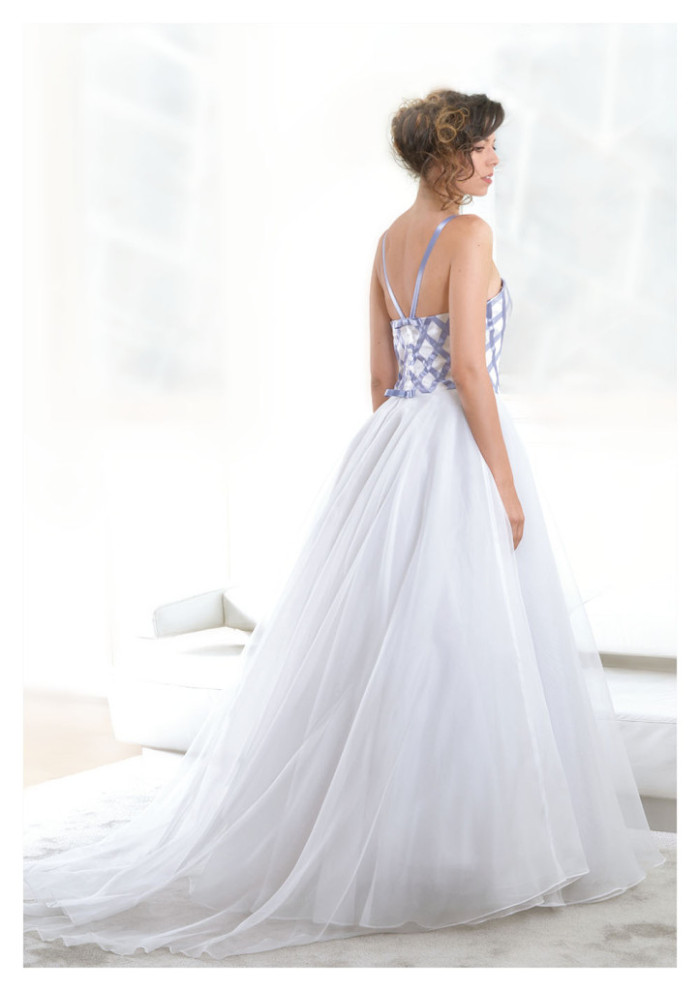 I dettagli e le tonalità sono un piccolo gioiello: candidi toni di bianco si alternano a raffinate nuances avorio, sottoscrivendo l’apice della cura sartoriale con rifiniture, intrecci ed intarsi ton sur ton o dolcemente declinati verso una tenue sfumatura lavanda.