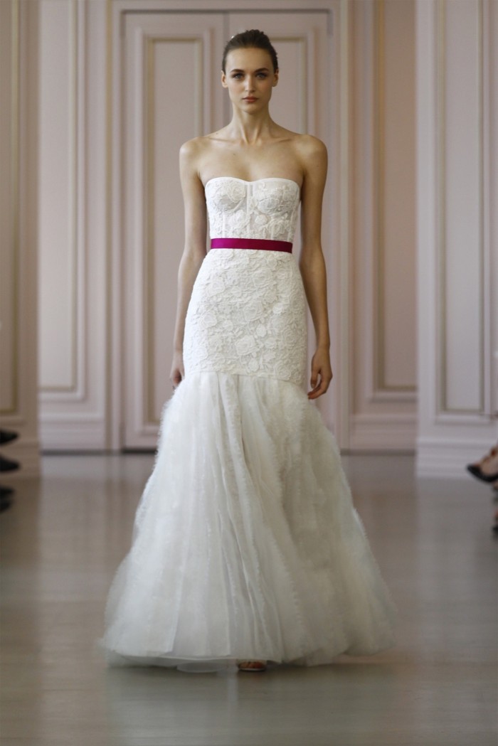 Oscar De La Renta 2016 è una collezione moderna e sofisticata, ma assai delicata nell’interpretare un momento così importante, oltre ad essere perfetta per raccontare la poesia del giorno più bello in termini attuali e di tendenza, (non a caso vi sono tagli longuette che instillano il trend dell’anno venturo…).