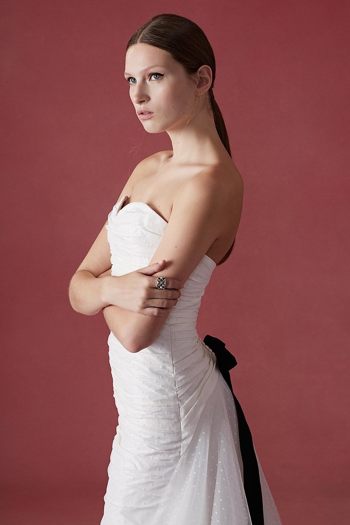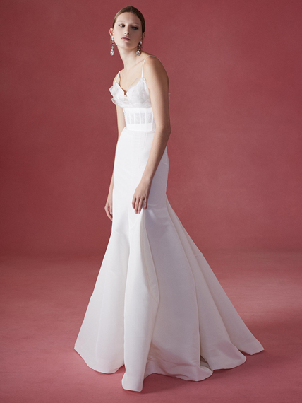Ogni creazione nuziale propone una femminilità di classe, dolce e vulnerabile al primo impatto, ma i cui dettagli ne descrivono una forte intensità, sia in fatto di una sensualità sottile ed ammiccante sia per la strenua lavorazione di gonne, corpetti e, naturalmente, strascichi.