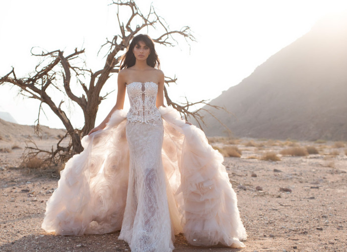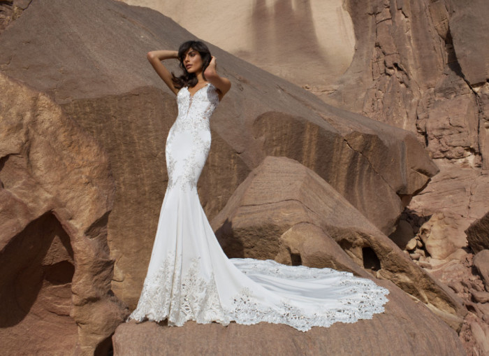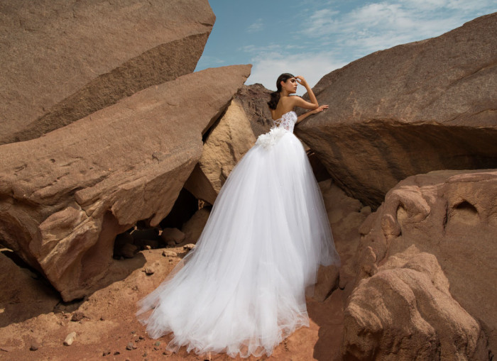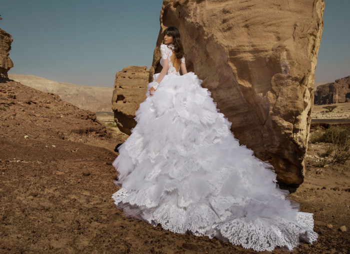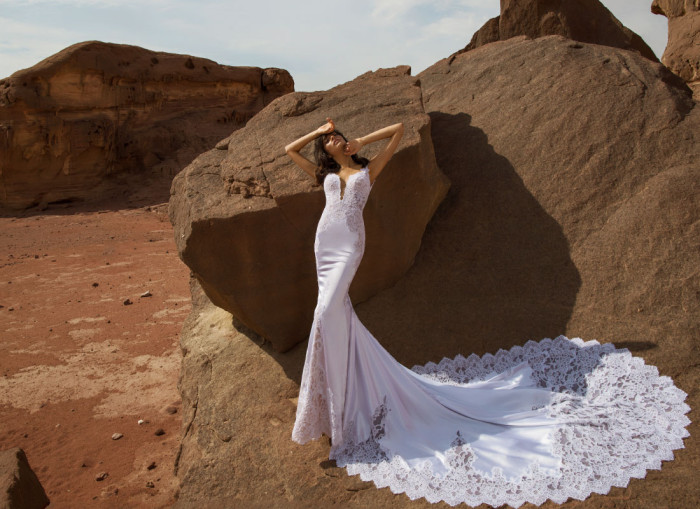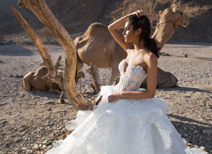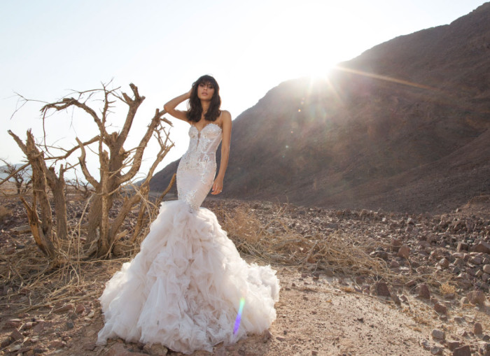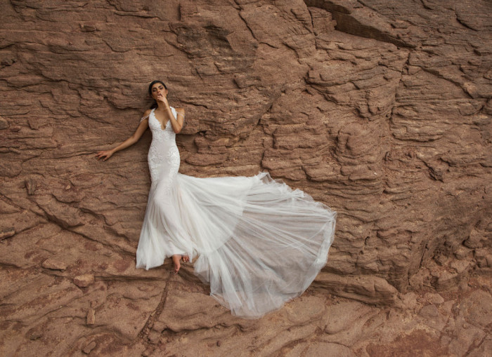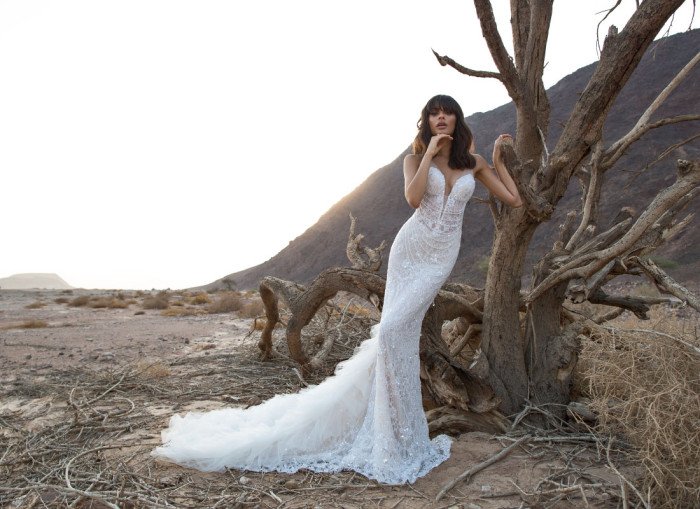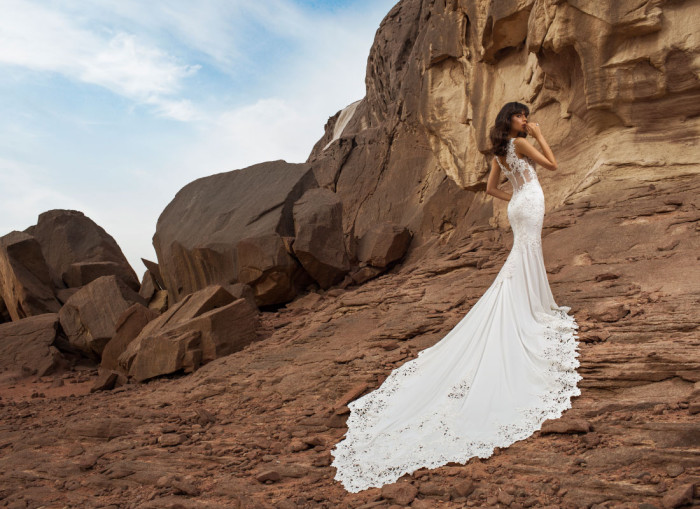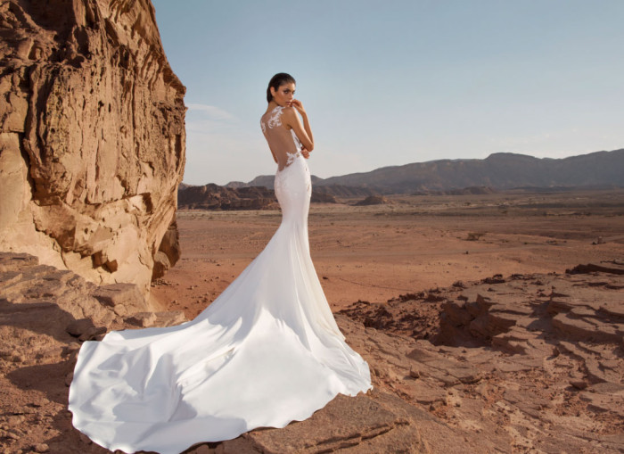 Il lookbook della collezione è stato realizzato con il deserto a fare da sfondo: infatti, ogni vestito da sposa è un inno all’acqua, soprattutto nelle sue increspature intrecciate con vento e sabbia, a creare energia e spirito.