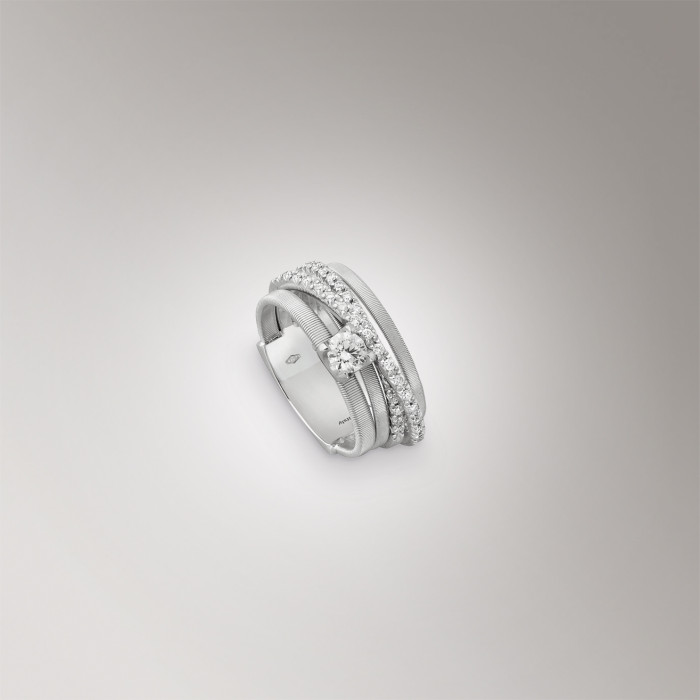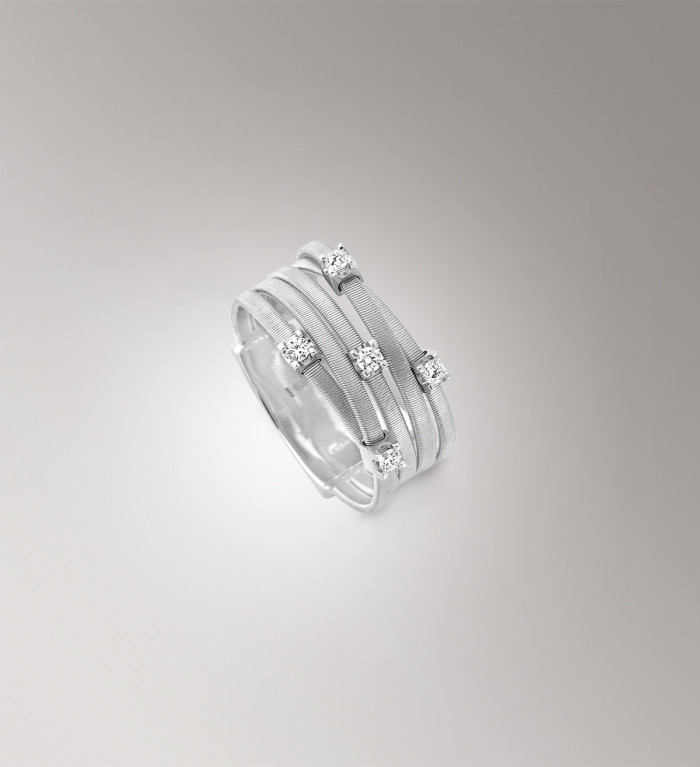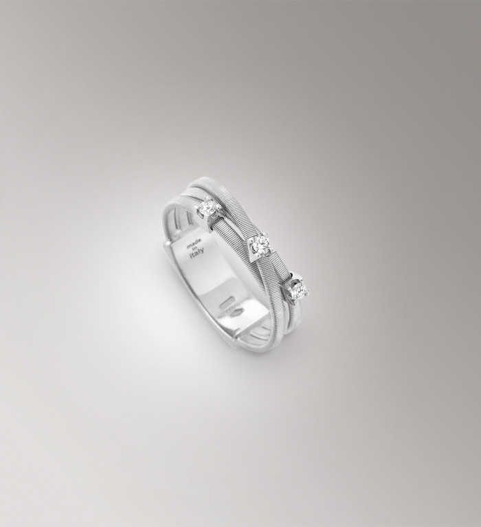 La collezione di anelli (e non solo…), ancora, si caratterizza per un importante fil rouge, segno distintivo del brand come solo la magistrale lavorazione artigianale “a corda di chitarra” può essere.