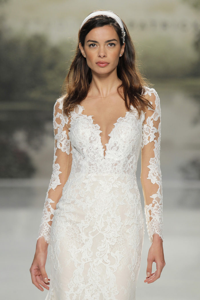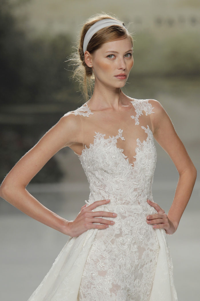 Karolina Kurkova, ex angelo di Victoria’s Secret e una delle top model più iconiche di Pronovias, ha aperto le danze per la nuova collezione St. Patrick 2018 alla Barcelona Bridal Fashion Week 2017: il suo abito di apertura era audace e seducente, un modello trasparente e ricamato per abbracciare in toto la figura.