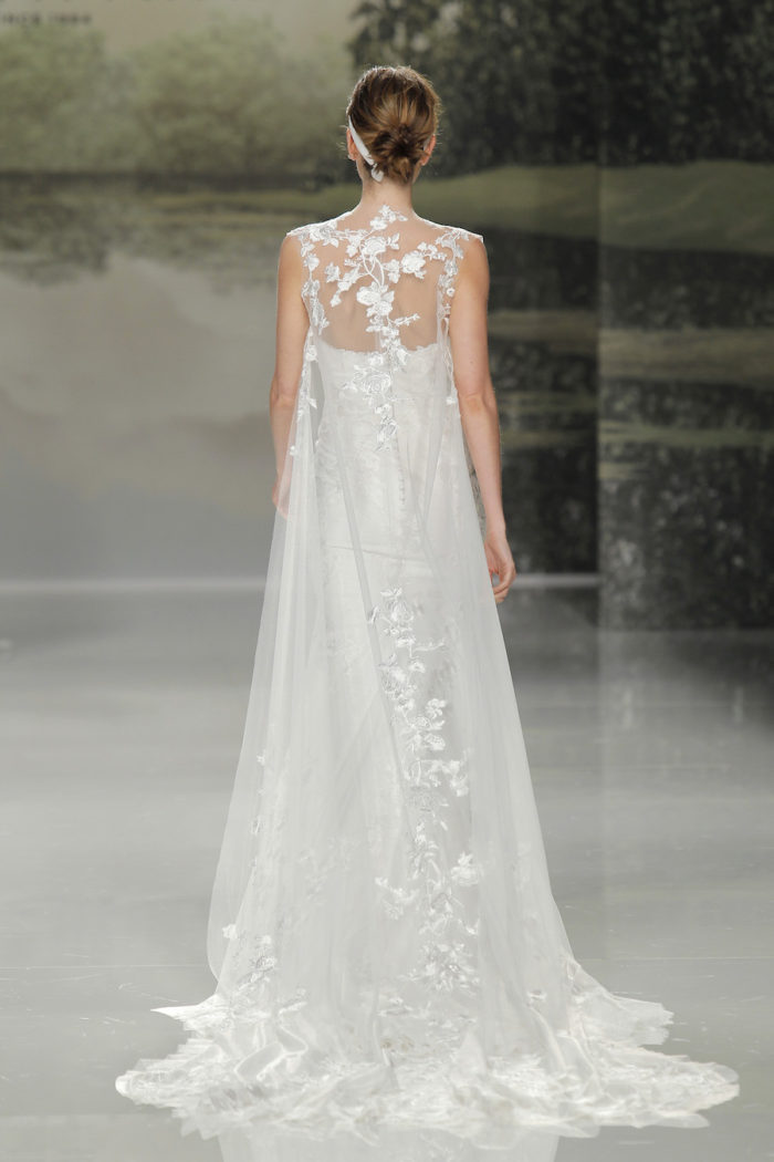 Il bianco, nel suo tono più puro, è il colore predominante, mentre la versatilità delle finiture e dei dettagli arricchisce le possibilità cromatiche della collezione: lavorato sui diversi tessuti, il ricamo viene reinventato con nuove forme e materiali, intensificando il romanticismo degli abiti da sposa.
