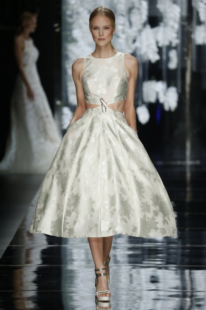 Sia i lungo sia in corto, i nuovi vestiti da sposa richiamano l’inimità di soffuse ambientazioni, giocando particolarmente (e non a caso) con dettagli e stili boho chic.