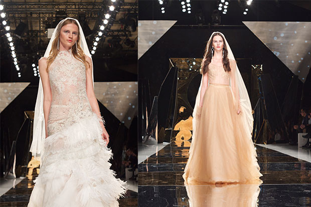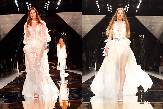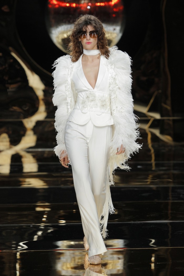Qui gli abiti da sposa propongono uno stile ricercato ma non classico: è un tripudio di linee e volumi dall’accento moderno e dall’esclusivo profilo cesellato, alcuni dei quali rifacendosi allo stile di Versace anni Novanta.