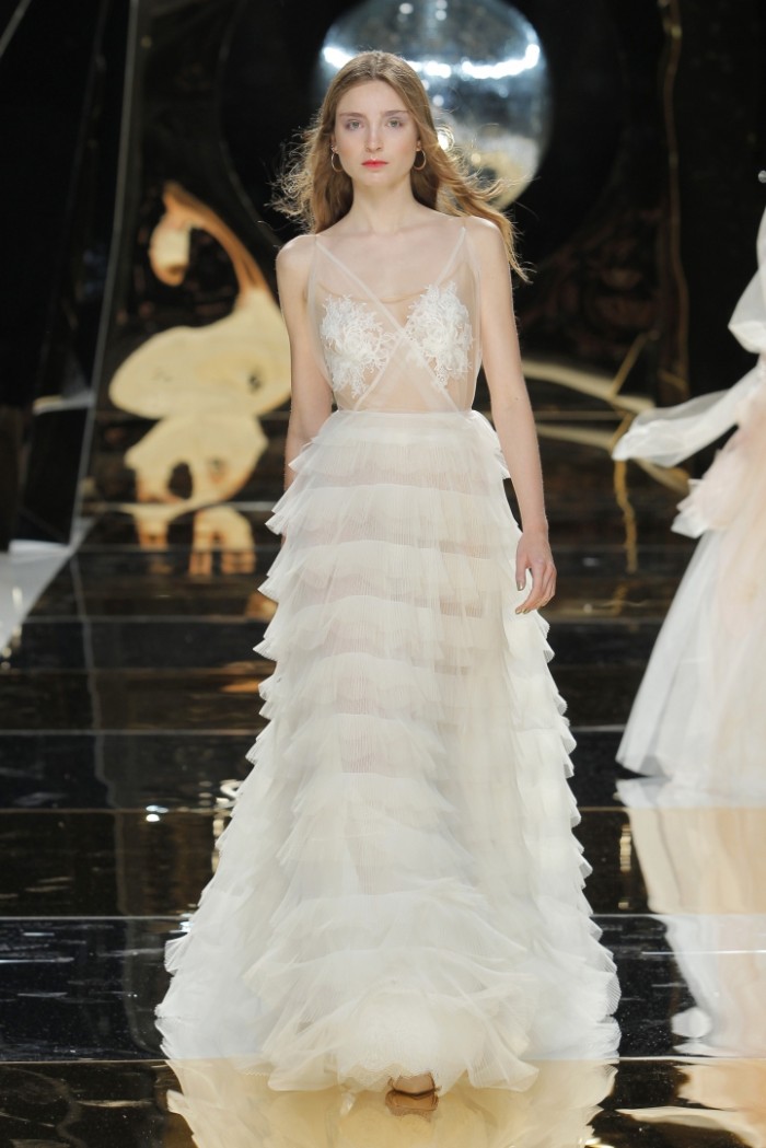 Yolan Cris presenta una collezione 2017 innovativa, con i nuovi abiti da sposa ad incantare le passerelle della Barcelona Bridal Week 2016: lo stile è scenografico ed interpretativo, muovendosi attraverso due concetti come il boho ed il chic, anzi il “new chic”.