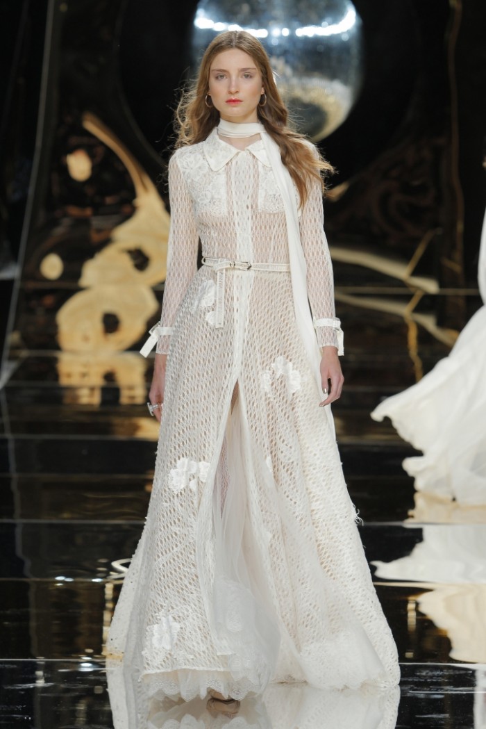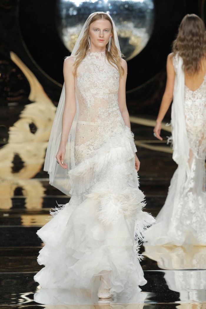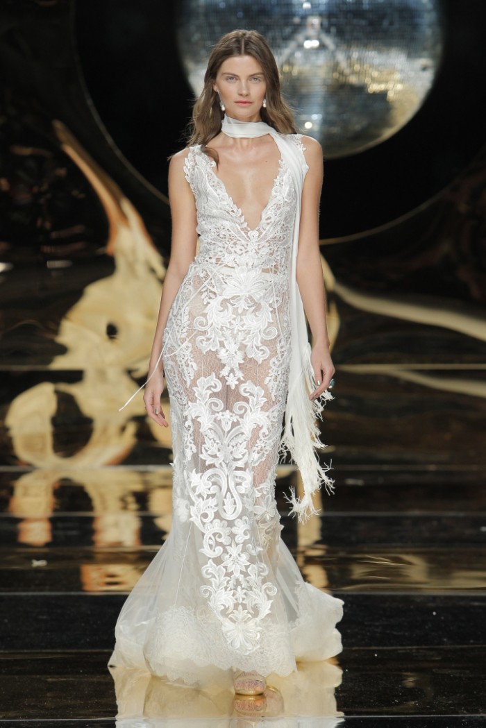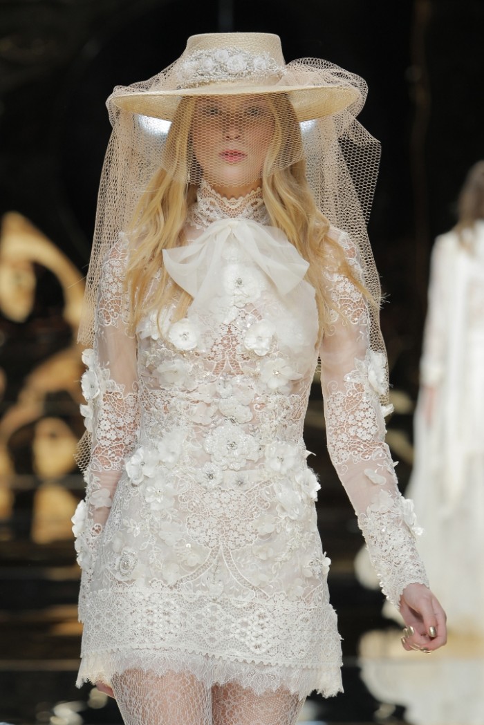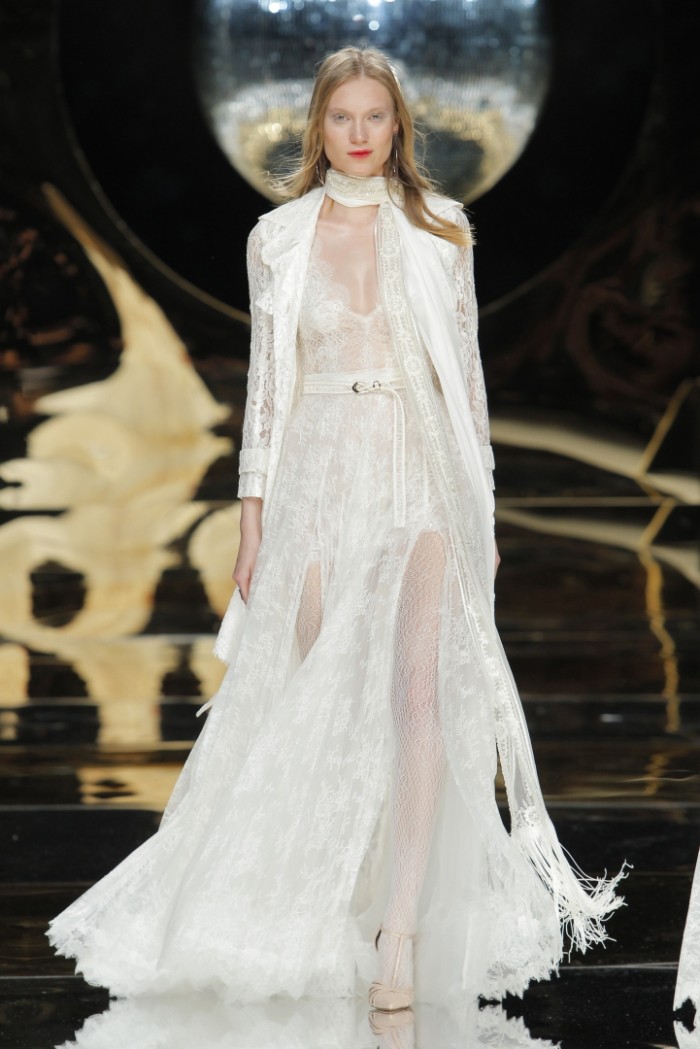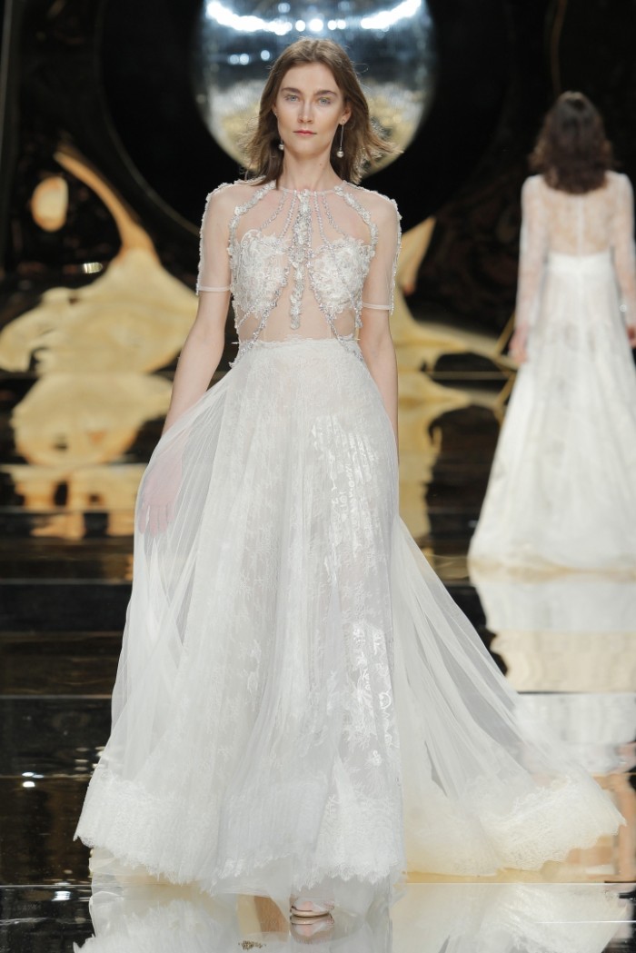 Infatti, si ammirano vestiti da sposa che ricordano i fasti hippie e bohemien degli anni Settanta, realizzando un accattivante countdown di modelli che riflettono i canoni caratterizzanti del periodo.